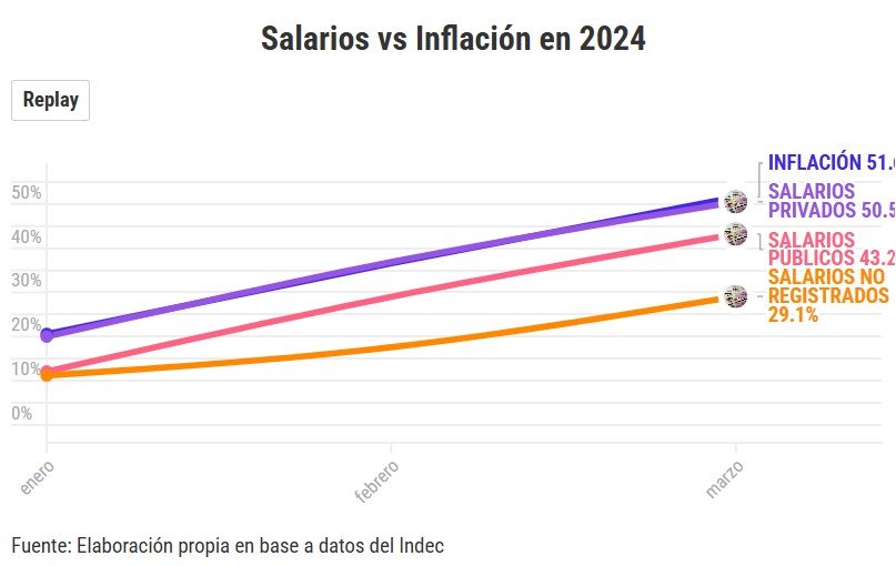 En un año, la pérdida real del salario en relación a la inflación fue de 28 puntos porcentuales. La caída se distribuye de la siguiente manera: