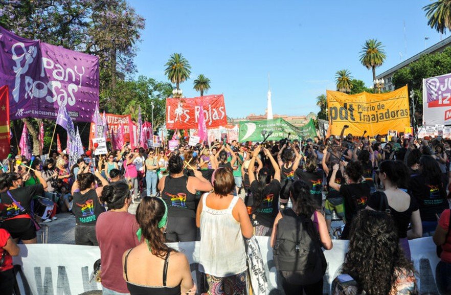 En paralelo a la lectura del documento, sobre las baldosas de Plaza de Mayo las manifestantes realizaban pinturas en homenaje a Nora Cortiñas. Desde el escenario, en tanto, se escuchaba el repudio al voto del gobierno en la ONU seguido del rechazo al intento de censura contra el libro Cometierra, de Dolores Reyes, y las obras de Gabriela Cabezón Cámara, Aurora Venturini y Sol Fantin, así como «el avance sobre la Educación Sexual Integral«. Todo esto, sostuvieron, forma parte de lo que calificaron como la «persecución oscurantista» de un «gobierno misógino». El documento también advirtió sobre las «limitaciones al acceso a información, a los anticonceptivos y al misoprostol para garantizar abortos». «Obstaculizar el aborto es un delito y al aborto clandestino no volvemos nunca más«, cerraron.