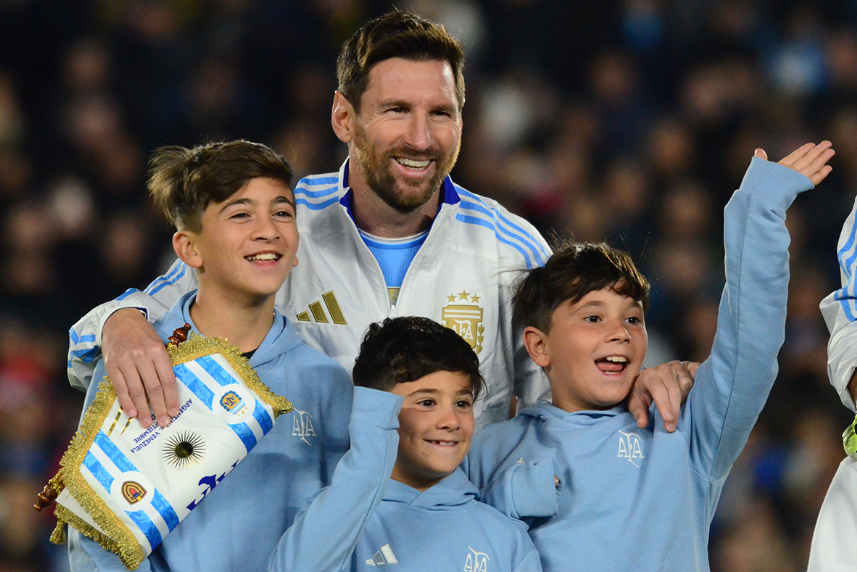 05/09/2025.- www.tiempoar.com.ar.- Foto portada: Messi junto a sus hijos tras el partido en donde Argentina se impuso ante Venezuela por 3 a 0. Imagen: @AFA.