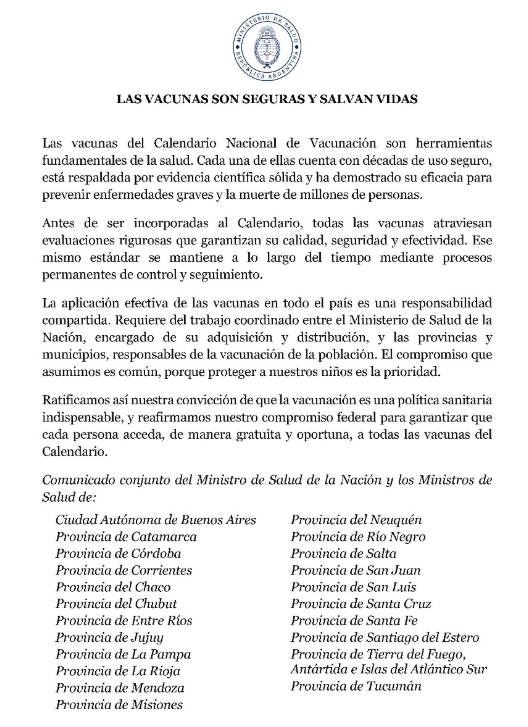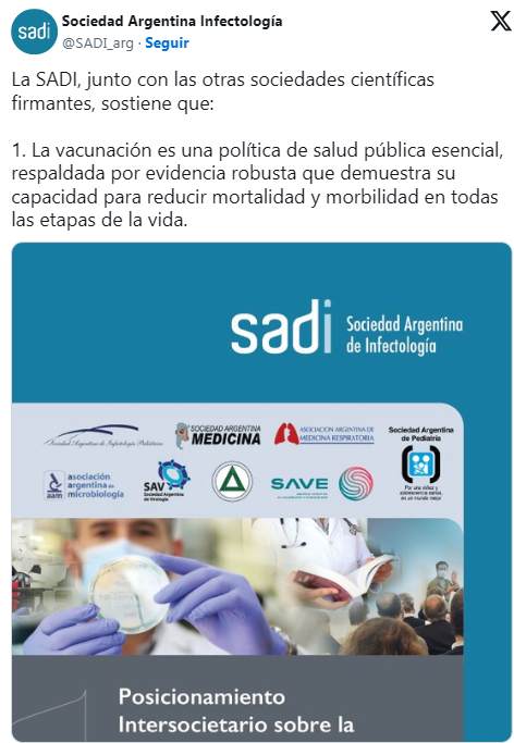 Tras un evento antivacunas en el Congreso, nueve sociedades científicas emitieron un comunicado reforzando la seguridad y la necesidad de mantener altas coberturas de vacunación. Señalan que la inmunización ha salvado millones de vidas en el mundo y que postergar o rechazar vacunas pone en riesgo a los más vulnerables.