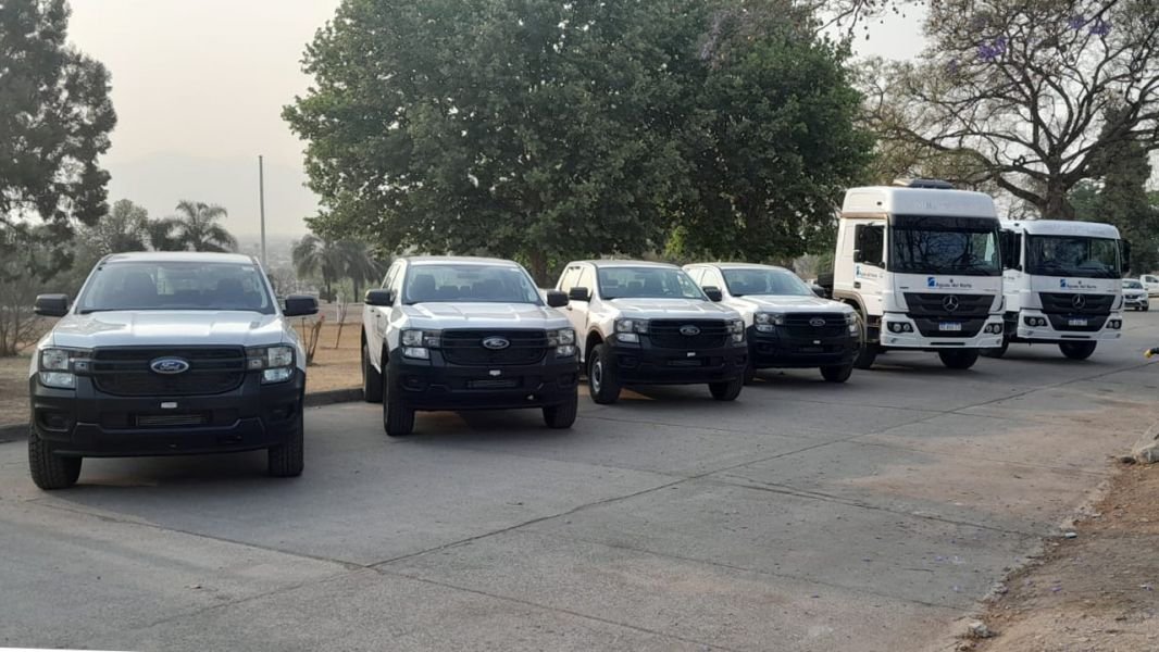 El presidente de Aguas del Norte, Ignacio Jarsún, encabezó hoy la entrega de seis nuevos vehículos para mejorar la capacidad operativa y de respuesta de Aguas del Norte hacia sus usuarios en toda la provincia. Se trata de cuatro camionetas y dos camiones.