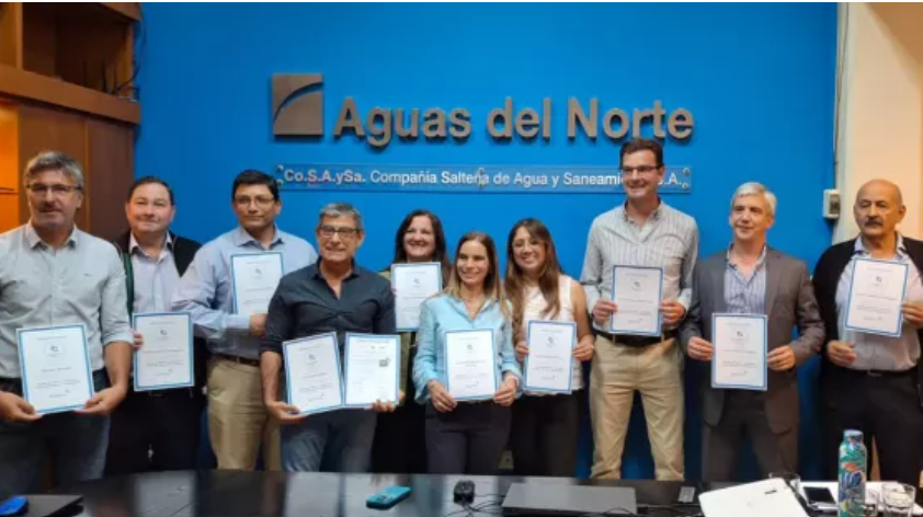 El gerente general de Aguas del Norte, Juan Bazán, junto a equipos técnicos de la compañía participó de una reunión con el Banco Interamericano de Desarrollo (BID) en la cual la empresa fue distinguida con la insignia de calidad y certificación en los procesos, de acuerdo a normas que establece el organismo.