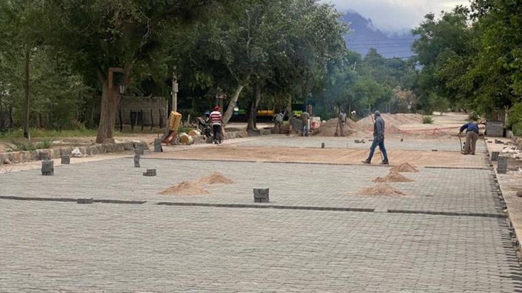 Las tareas registran un avance del 70% y comprenden la provisión y colocación de adoquines de hormigón sobre una superficie de 1.356 metros cuadrados. En una primera etapa, los trabajos abarcaron una superficie de 3.317 m2.
