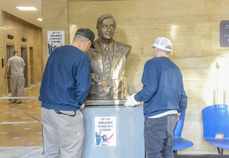 El Gobierno retiró el busto de Néstor Kirchner del edificio de ANSES