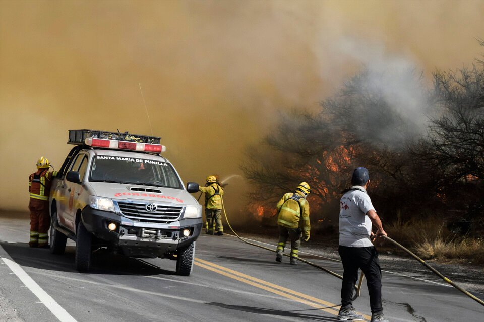 Unos 300 bomberos trabajaron durante el día y la noche con apoyo de aviones hidrantes y helicópteros para sofocar el foco principal en las cercanías de Capilla del Monte. Las autoridades mantienen el alerta de «extremo riesgo” de fuego en toda la provincia. La confluencia de factores no podría haber sido peor: posible presencia de piromaníacos, extrema sequedad y ráfagas de viento muy fuertes que extendieron al fuego de manera incontrolable e impidieron durante horas el uso de aviones y helicópteros para combatir llamas en bosques donde alcanzaron los 15 metros de alto.