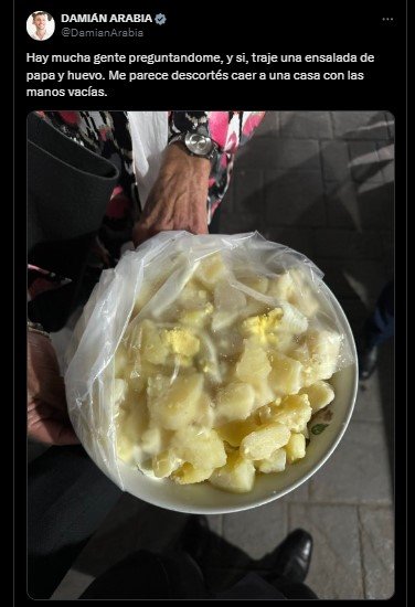 Cerca de las siete y media de la tarde los diputados de La Libertad Avanza se subieron a dos combis de la Cámara de Diputados —las mismas que usaron para ir a visitar a los genocidas en el penal de Ezeiza– con destino a la Quinta de Olivos. Los del PRO, por separado, hicieron lo propio. Uno de los que comensales fue Martín Yeza, muy cercano a Mauricio Macri. María Eugenia Vidal había dicho en la previa que «cualquier encuentro que ayude a generar consensos y ponernos de acuerdo sin gritos y descalificación es bueno». El diputado Damián Arabia, cercano a Patricia Bullrich, también estuvo presente y subió una foto de una ensalada de papa y huevo y puso risueño: «Hay mucha gente preguntándome, y si: traje una ensalada de papa y huevo. Me parece descortés caer a una casa con las manos vacías».