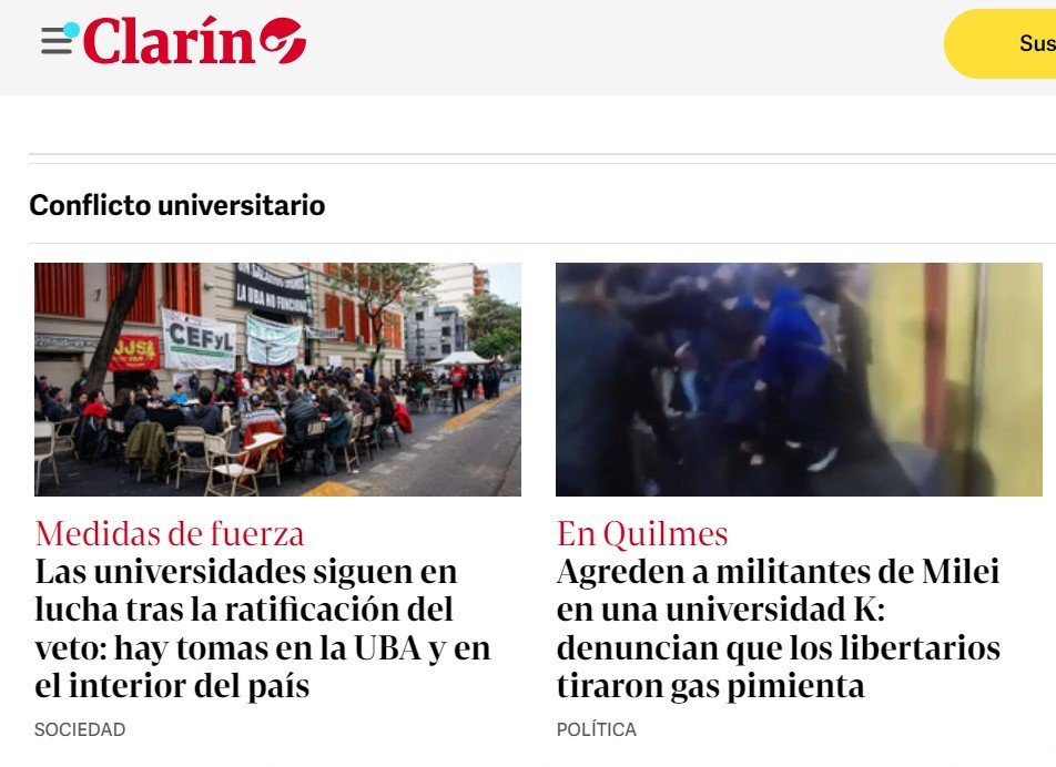 En medio de las tomas en las universidades en todo el país, el diario Clarín publicó en su matutino una foto de portada victimizando a un joven acusado de agredir con gas pimienta a las y los estudiantes durante una asamblea en la Universidad de Quilmes. “La persona que aparece en la tapa de Clarín tiró gas pimienta”, apuntó el rector de la institución.
