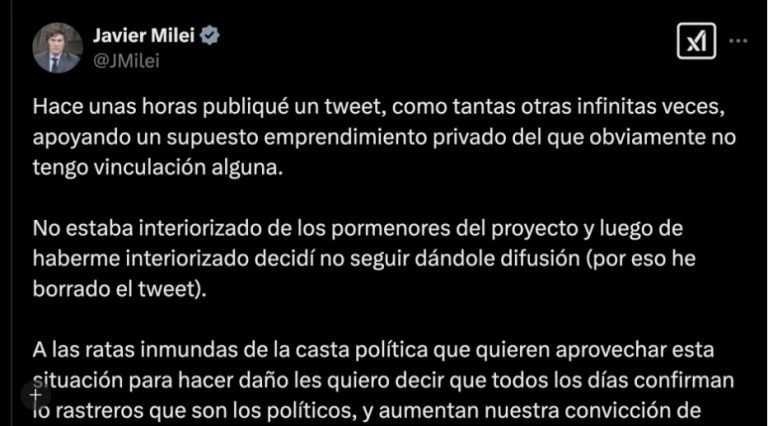 «MILEI INTENTÓ DESMARCARSE DE LA CRIPTO ESTAFA Y QUEDÓ PEOR»