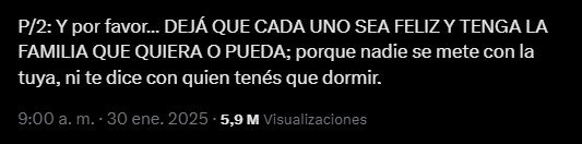 P/2: Y por favor… DEJÁ QUE CADA UNO SEA FELIZ Y TENGA LA FAMILIA QUE QUIERA O PUEDA; porque nadie se mete con la tuya, ni te dice con quien tenés que dormir.
