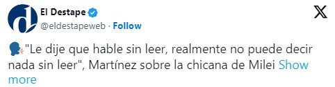 El presidente del bloque de diputados de Unión por la Patria, Germán Martínez, también criticó a Milei y afirmó que “esperaba más” y apuntó contra el mandatario. “Me llamó mucho la atención que no se hable del crecimiento del PBI, de inflación, de la situación comercial de la argentina, del tipo de cambio promedio”, lanzó. En ese sentido, criticó: “La única referencia a las provincias las hizo con dos señales: 60 mil millones de dólares adicionales de ajuste y dijo algo que ni De la Rúa se animó, que es que si no hay recursos no hay piso de coparticipación”.