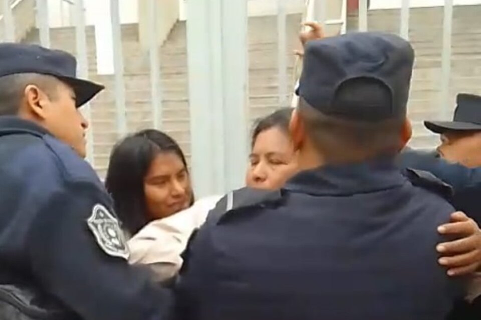 La posibilidad se tomó como poco creíble, dado que lo hizo mientras estaba encadenada, con una soga sujetada desde las rejas de la entrada del complejo judicial. Sin embargo, los policías que se encontraban en el lugar actuaron rápidamente cuando la vieron desvanecerse, según muestra el video viralizado por integrantes de las mismas comunidades.
