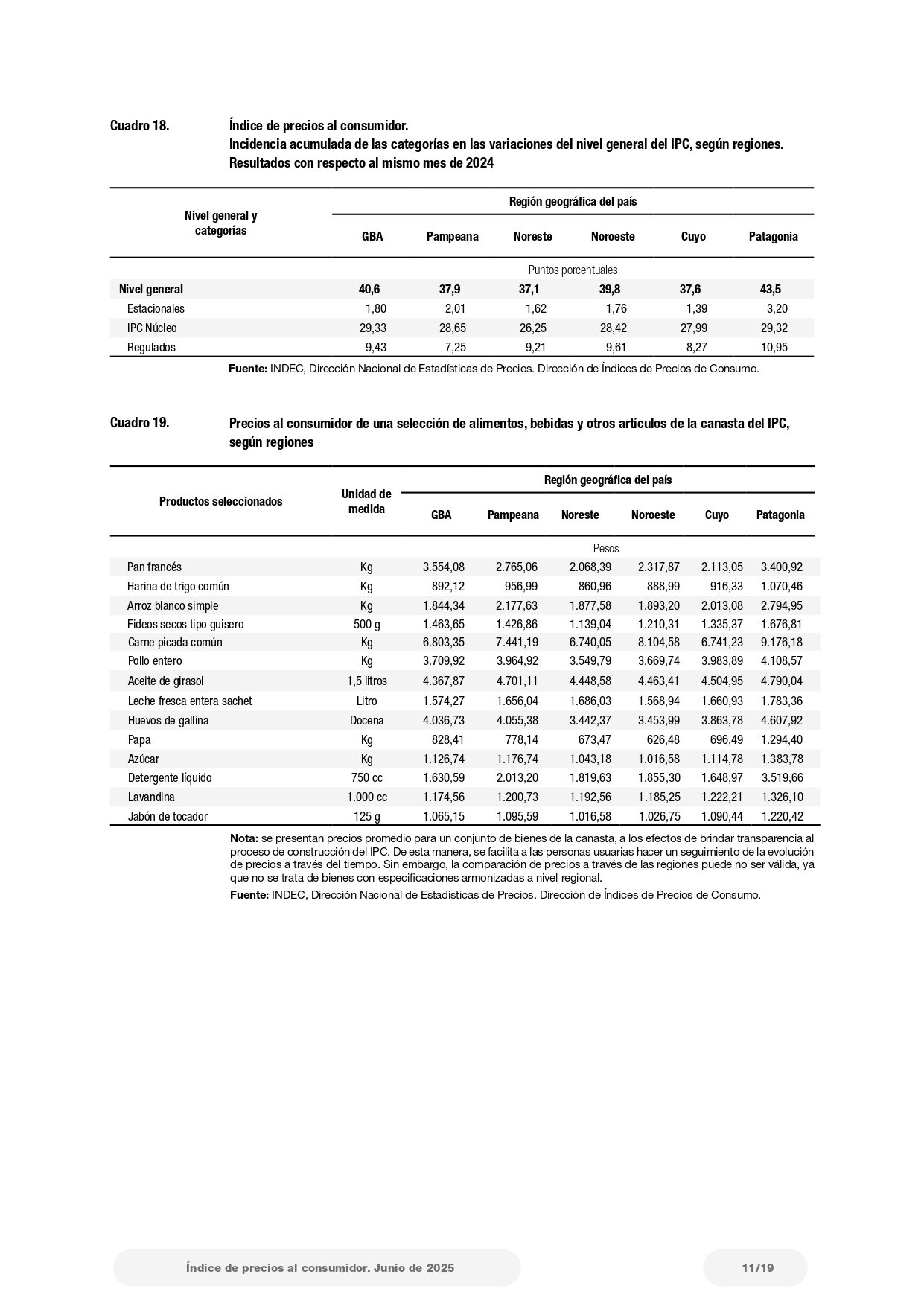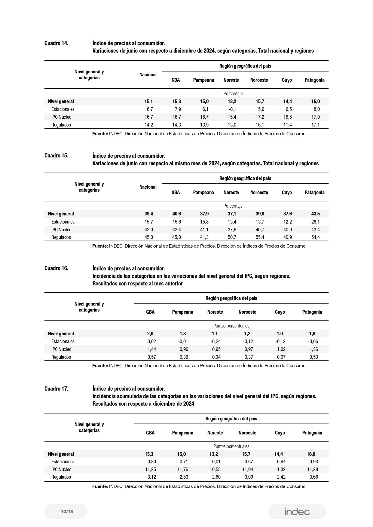 La inflación de junio, por regiones