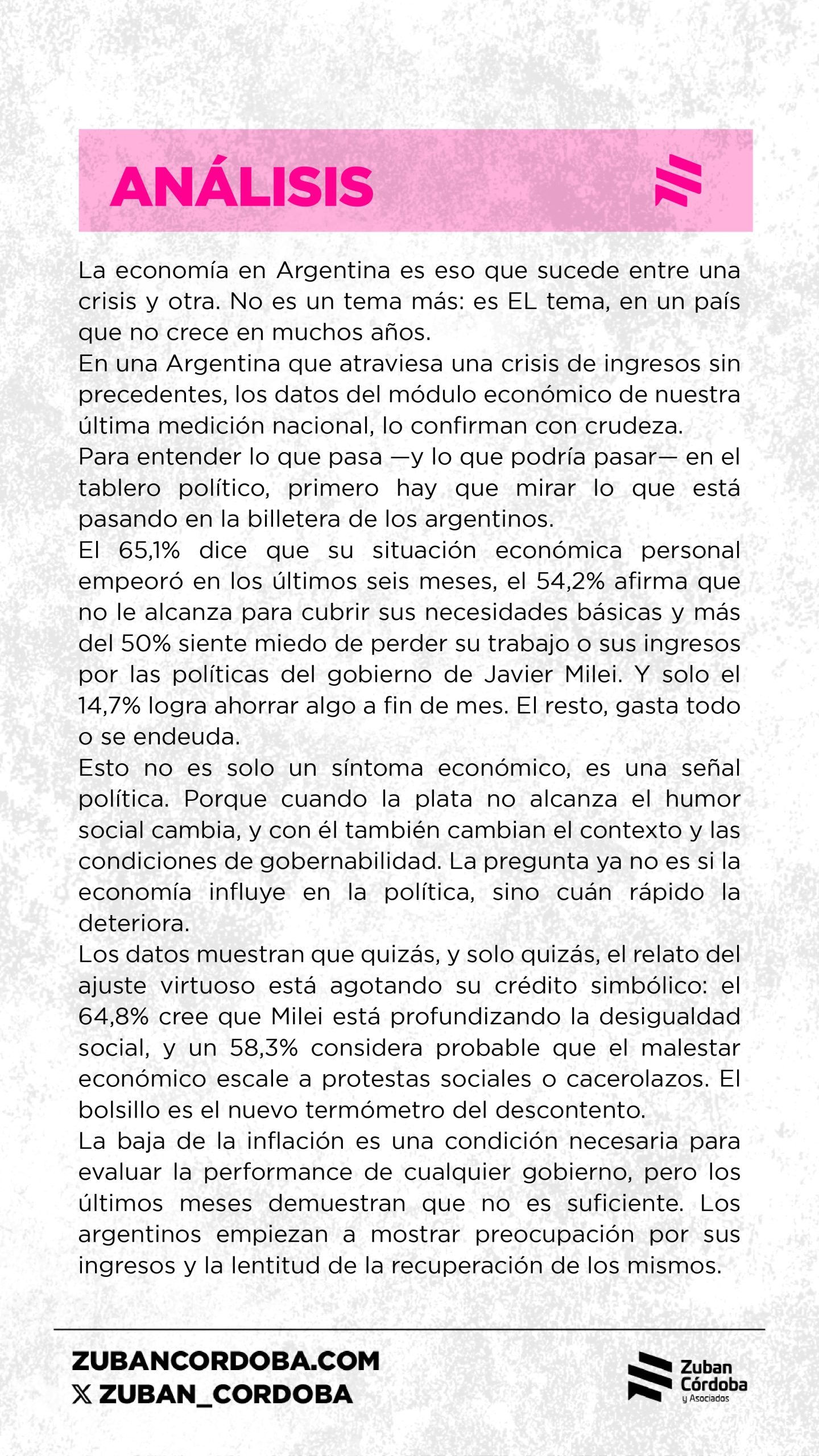 28/07/2025.- Página/12.- Foto portada: Encuesta de Zuban Córdoba. «El bolsillo es el nuevo termómetro del descontento». Imagen: Gentileza Zuban Córdoba.