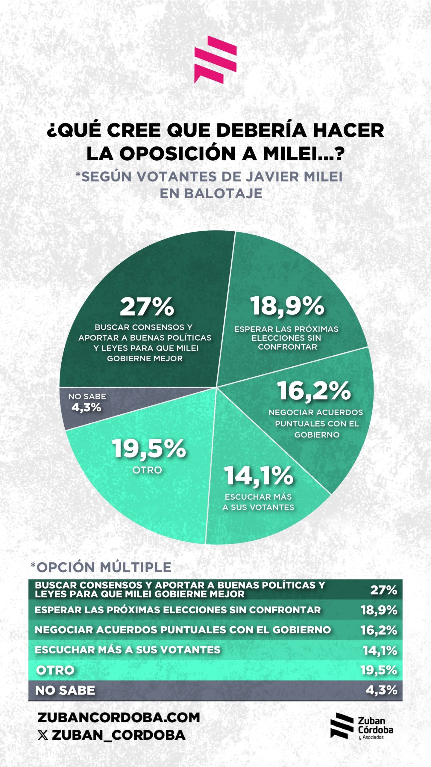 “La baja en la inflación es una condición necesaria para evaluar la performance de cualquier gobierno, pero los últimos meses demuestran que no es suficiente”, concluyó la consultora. “Los argentinos empiezan a mostrar preocupación por sus ingresos y la lentitud de la recuperación de los mismos”.