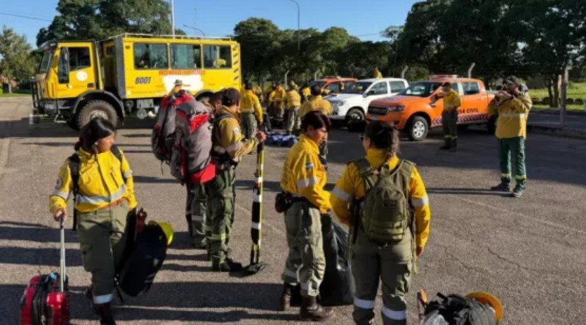 La comisión de brigadistas de la región partió esta mañana desde el aeropuerto de Jujuy ante la presencia del gobernador Carlos Sadir, la ministra de Ambiente de la vecina provincia, María Inés Zigarán y el subsecretario del área de Salta.