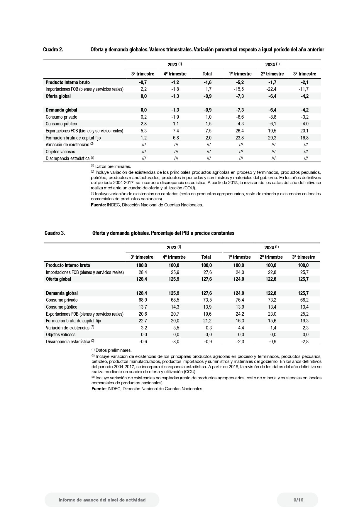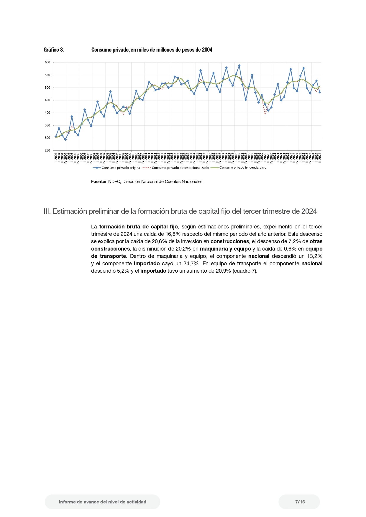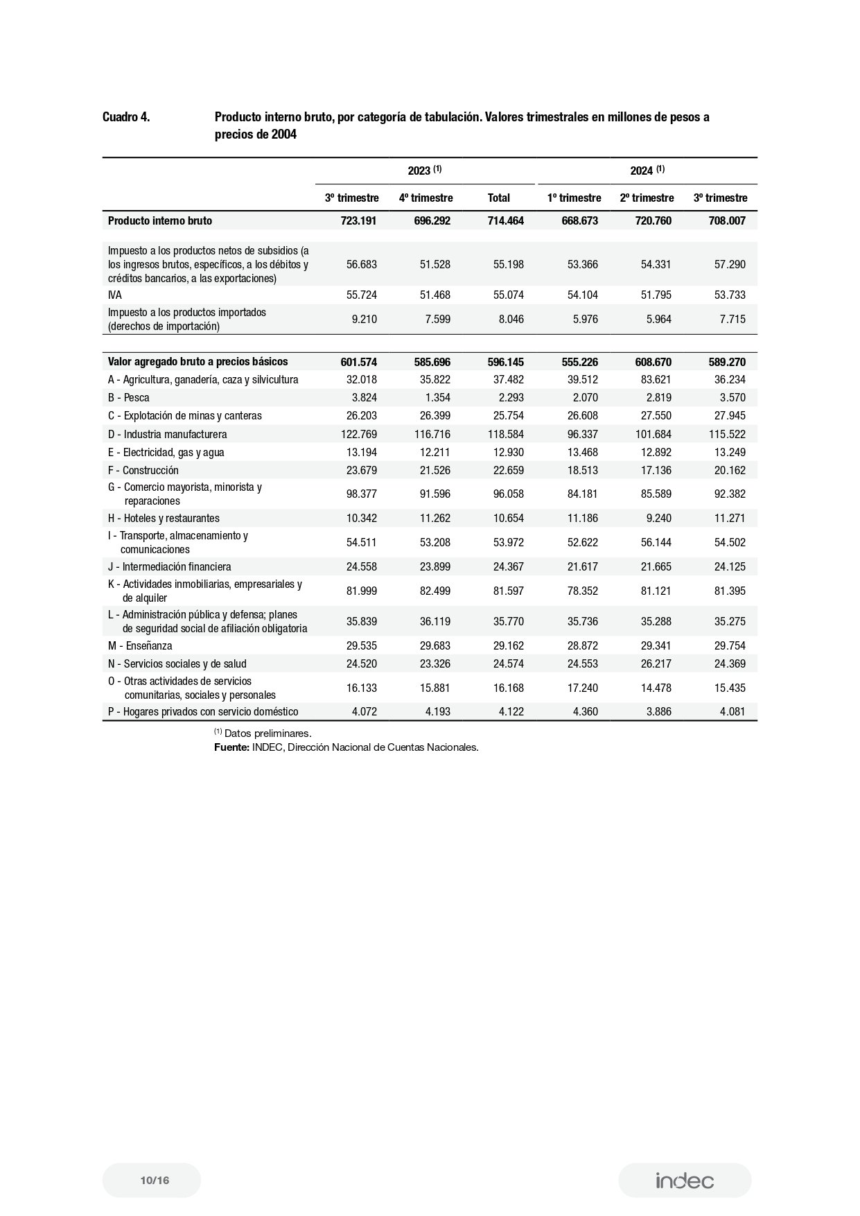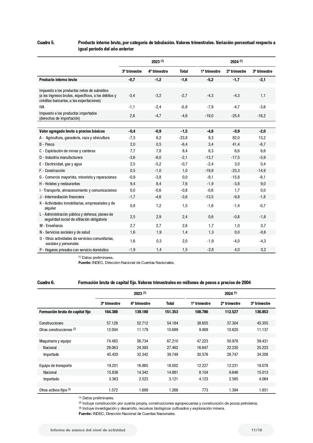 El PBI creció un 3,9% frente al trimestre anterior, pero cayó un 2,1% interanual en el tercer trimestre de 2024. Detrás de los números, la inversión sigue desplomándose y sectores clave, como la construcción, registran caídas pronunciadas.