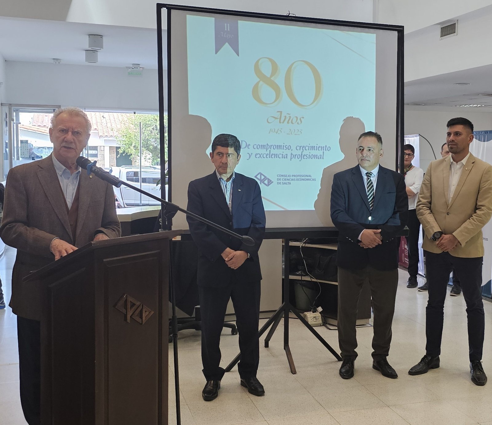 En un emotivo acto, el Consejo Profesional de Ciencias Económicas de Salta, celebró junto a la Comisión Directiva, colaboradores, autoridades de ambas universidades, ex presidentes, el párroco Oscar Ossola y el vicegobernador de la Provincia de Salta, Oscar Antonio Marocco, los 80 años de esta institución.