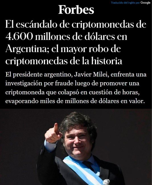 La revista Forbes, uno de los medios de negocios más importante del mundo, publicó que el criptogate de Javier Milei es «el robo más grande de la historia».
