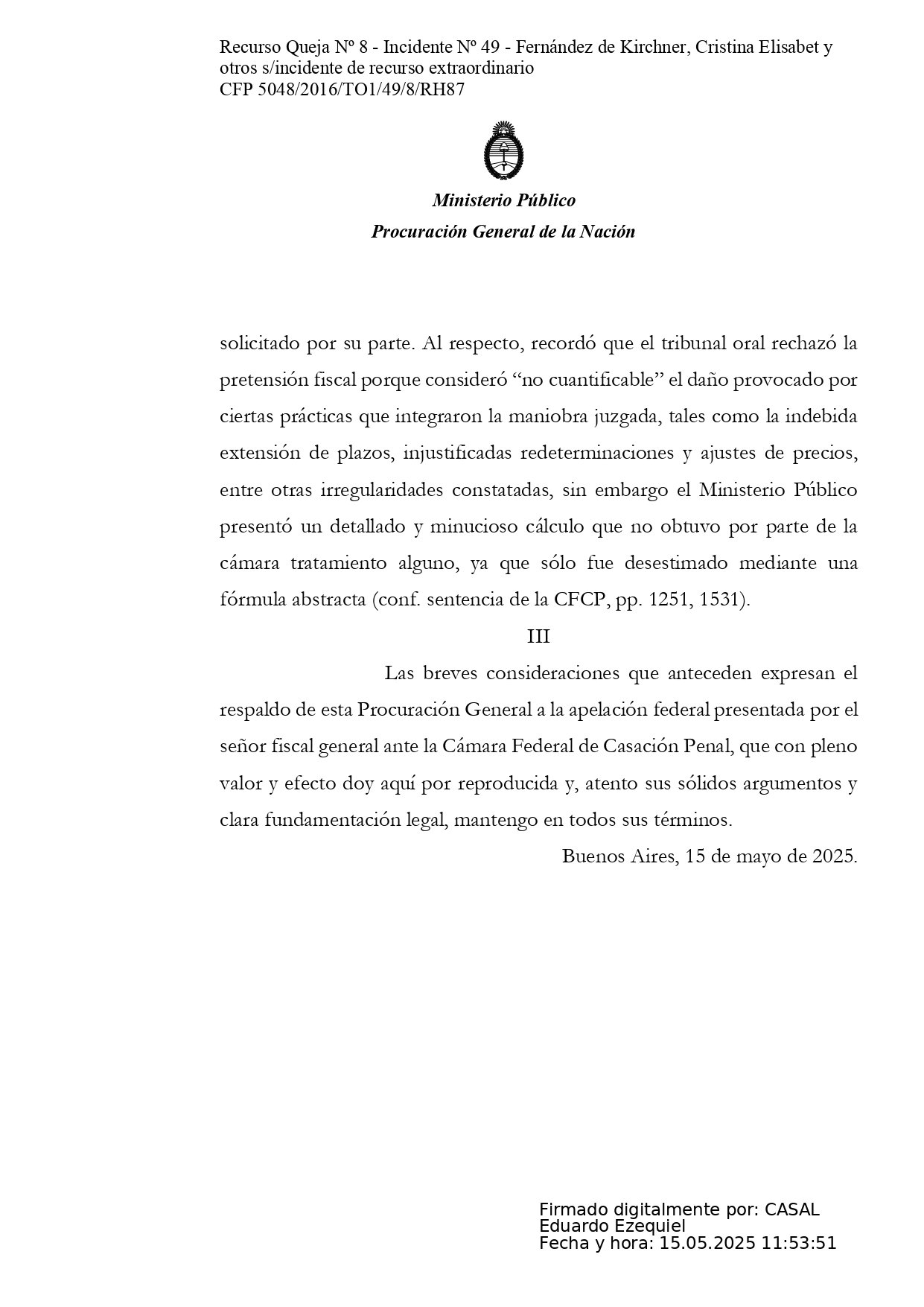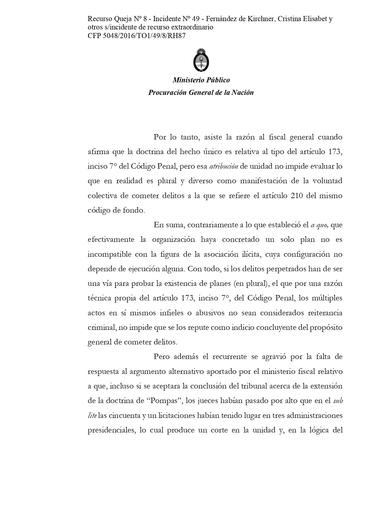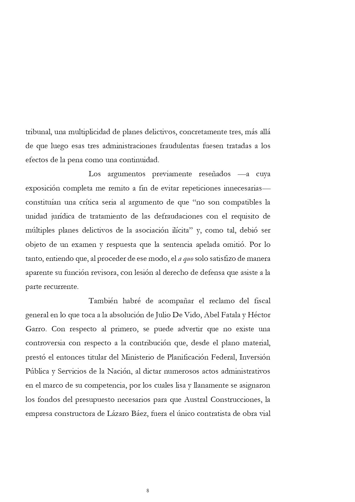 El máximo tribunal simplemente le mandó a Casal un texto de una línea: «Córrase vista a la Procuración General de la Nación», en alusión al recurso de Villar, pero no le envió para que dictamine los planteos de las defensas. Sobre esos no tiene obligación.