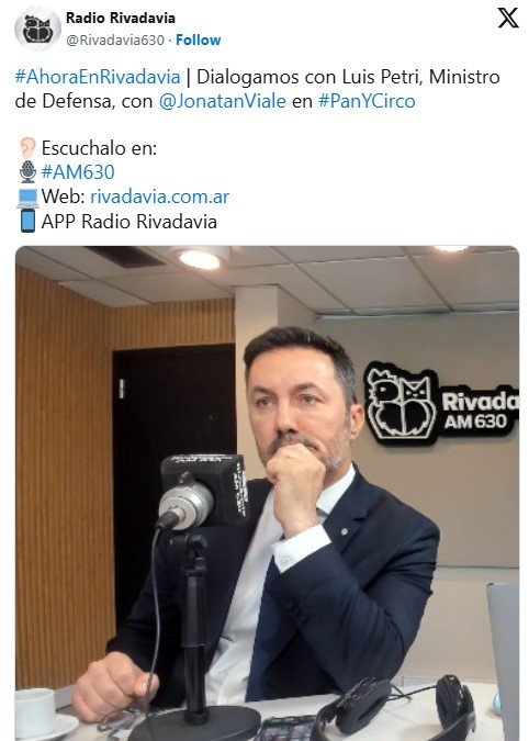 El ministro de Defensa, Luis Petri, sostuvo que «la violencia de genero también afecta a los hombres», al defender al presidente Javier Milei por las críticas a su discurso en el Foro de Davos.