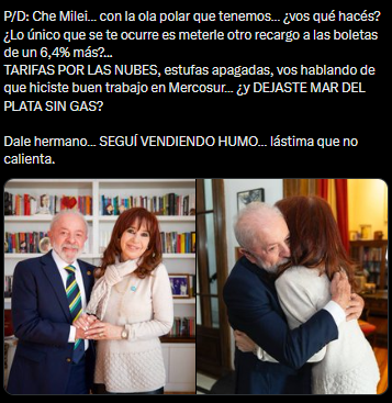 «Observé con satisfacción la serenidad y determinación con la que Cristina enfrenta esta situación adversa y su determinación a seguir luchando», posteó Lula, y destacó el consejo que le brindó durante el diálogo: «Le hablé de la importancia de que se mantenga fuerte en estos momentos difíciles».
