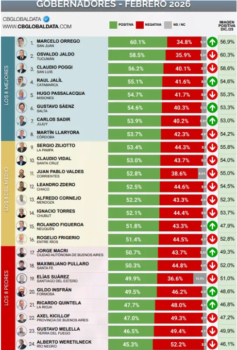 Esas afirmaciones, sin embargo, coexisten con lecturas más amplias del mapa político salteño. Encuestas de opinión recientes colocan a Sáenz en un lugar relativamente fuerte dentro de los gobernadores provinciales, con índices de imagen que lo posicionan en la mitad alta del ranking nacional, aunque sin destacar en los primeros puestos. Esa foto —que combina respaldo propio con el desgaste natural de una gestión extensa— alimenta la lógica pragmática de quienes ven en un temprano posicionamiento un activo frente a la competencia interna y externa.