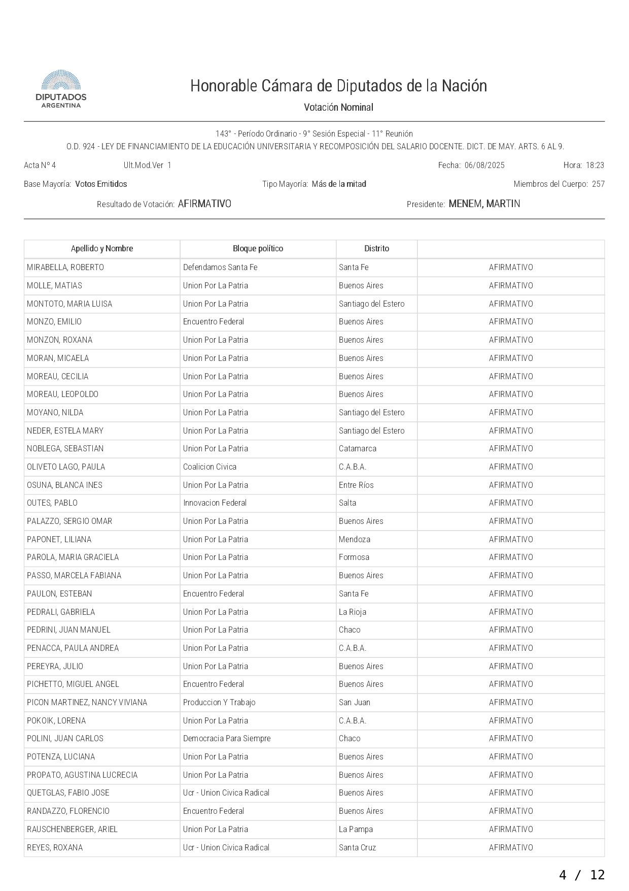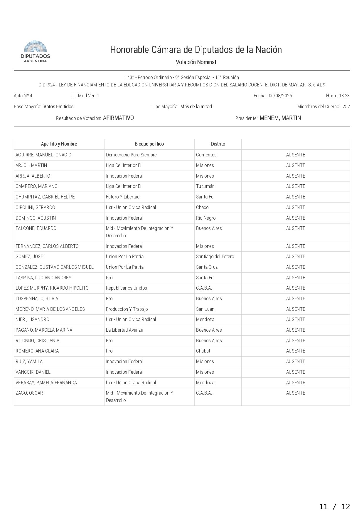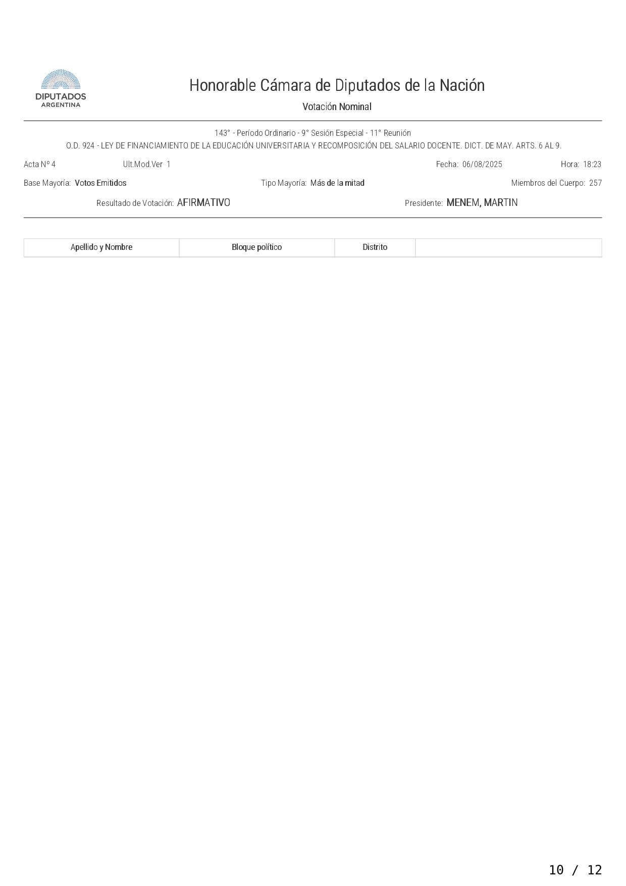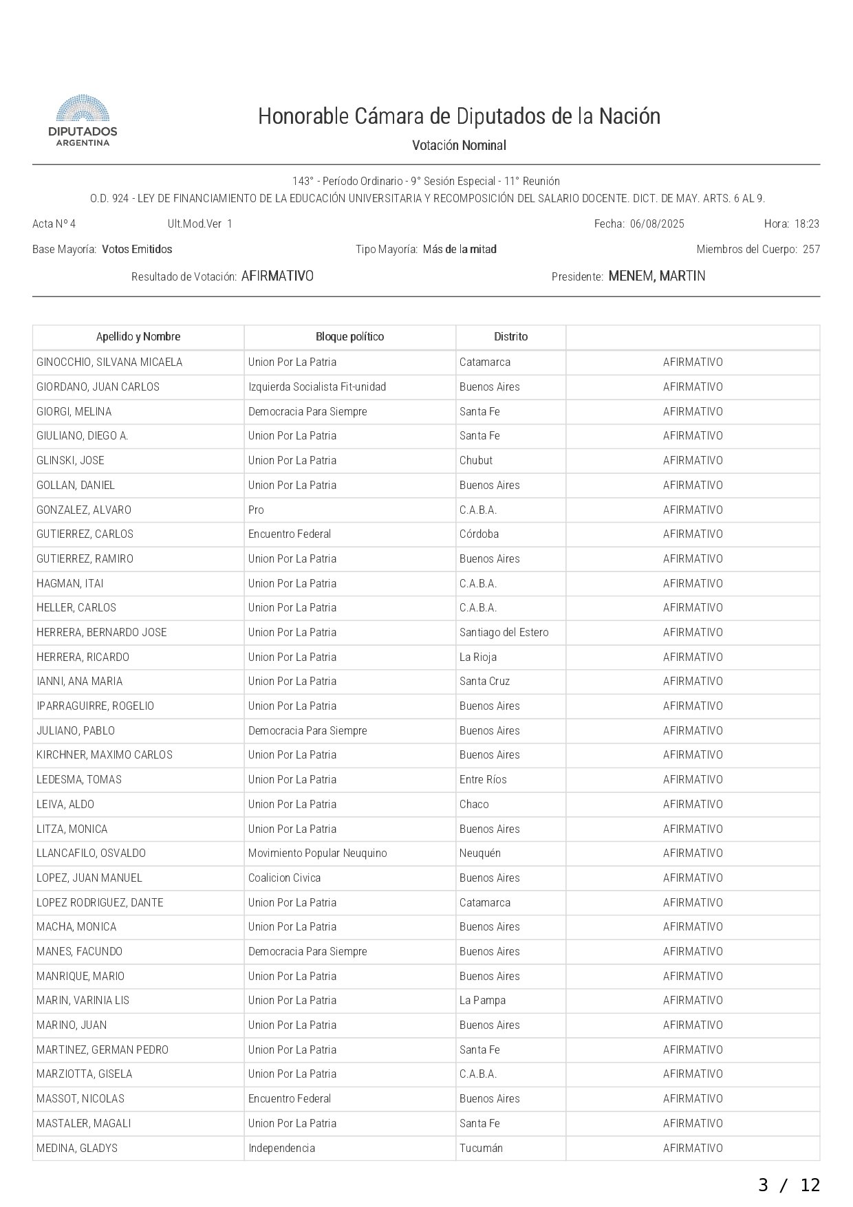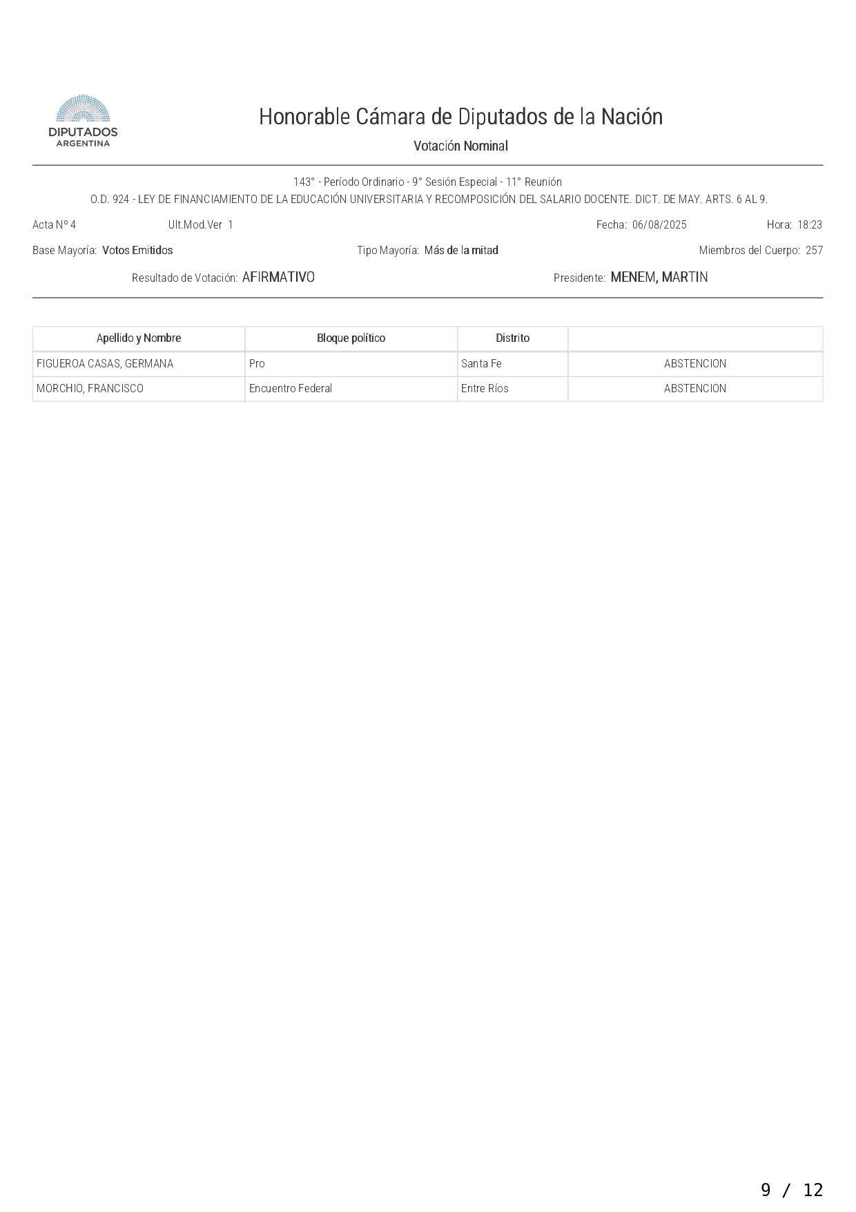 Así votó cada diputado la ley de financiamiento a las universidades
