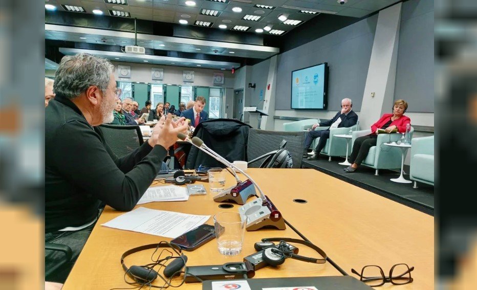 En el cierre de su exposición, Martínez preguntó ante el panel «cómo puede el FMI contribuir a un diálogo social efectivo, que contemple la visión de los representantes de los trabajadores».