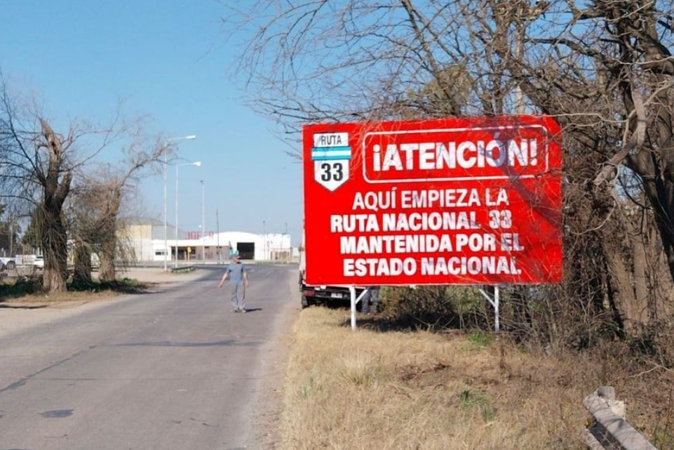 El gobernador de Santa Fe, Maximiliano Pullaro, decidió señalizar rutas nacionales —como la A 012, la 33 y la 9— con carteles de fondo rojo y letras blancas que advierten: “Aquí empieza la ruta nacional mantenida por el Estado Nacional” . La medida busca marcar una división clara entre las rutas provinciales reparadas por su gobierno y las nacionales, cuya responsabilidad de mantenimiento recae exclusivamente en la Nación.