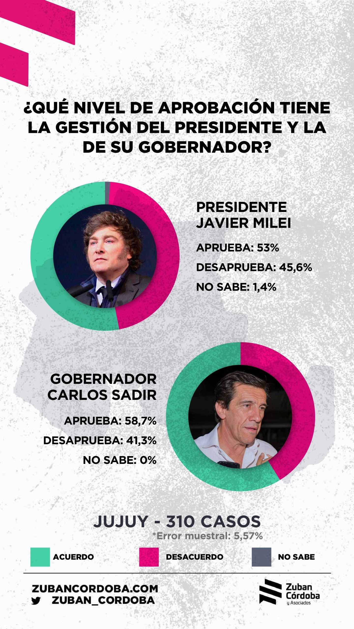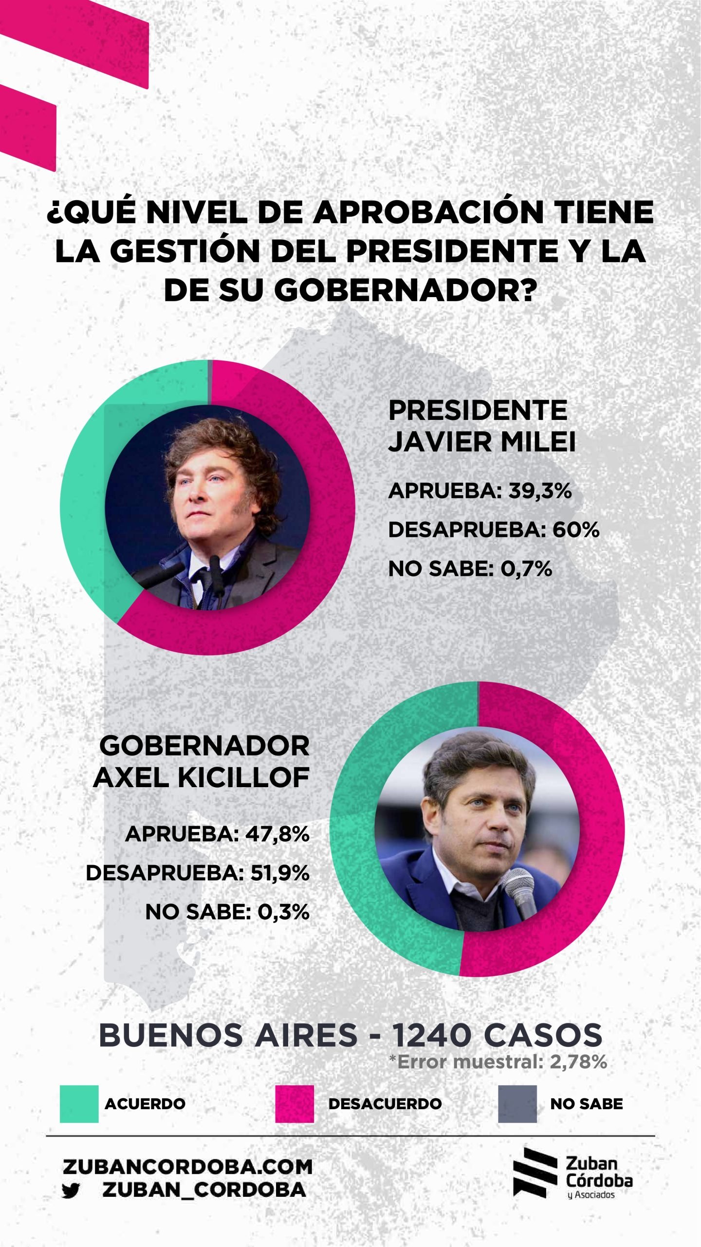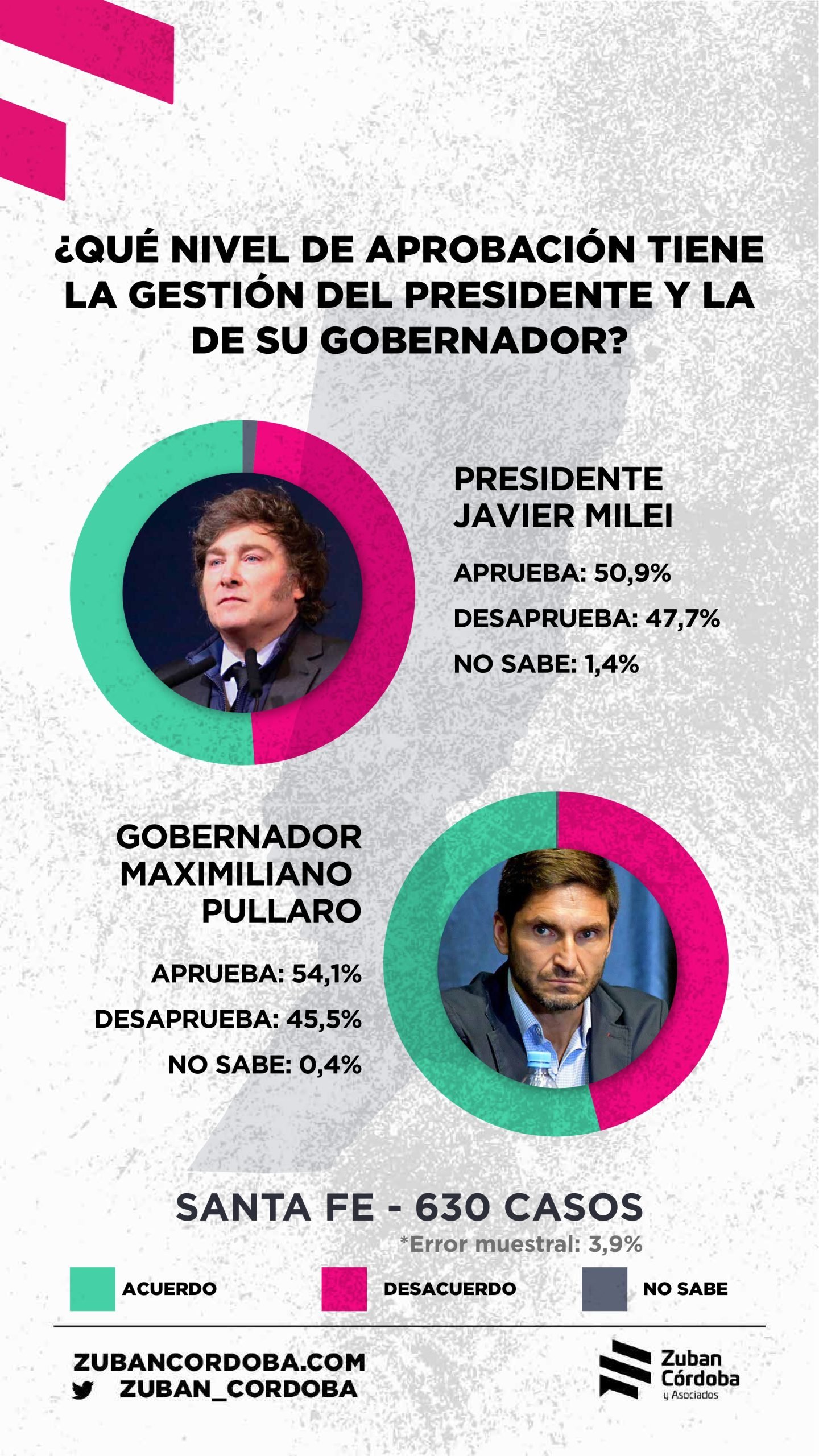 El sondeo se hizo en todas las provincias, en donde se preguntó a los encuestados tanto por la imagen del presidente como la del gobernador local: en ningún caso Milei tiene mejor imagen positiva.