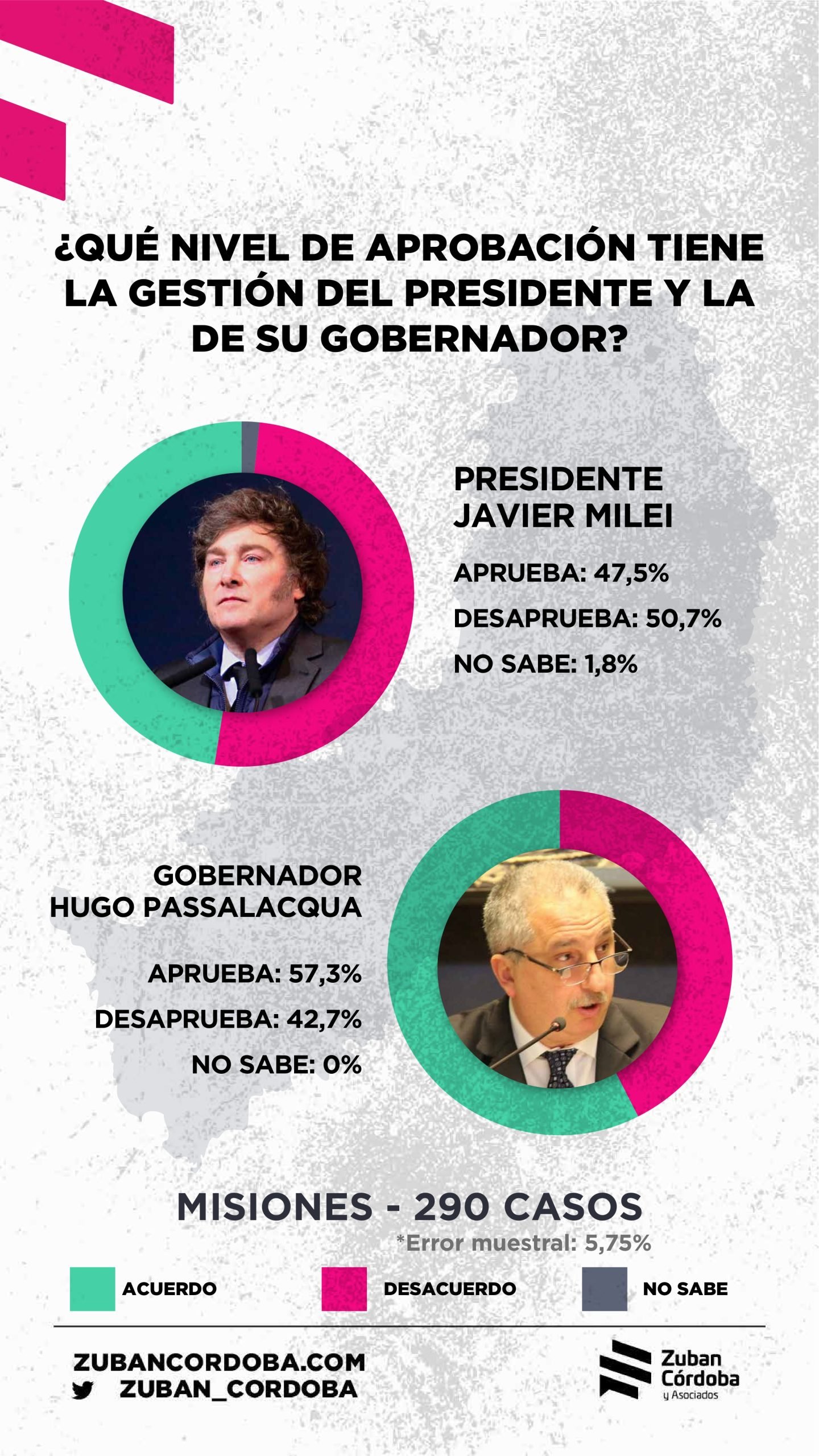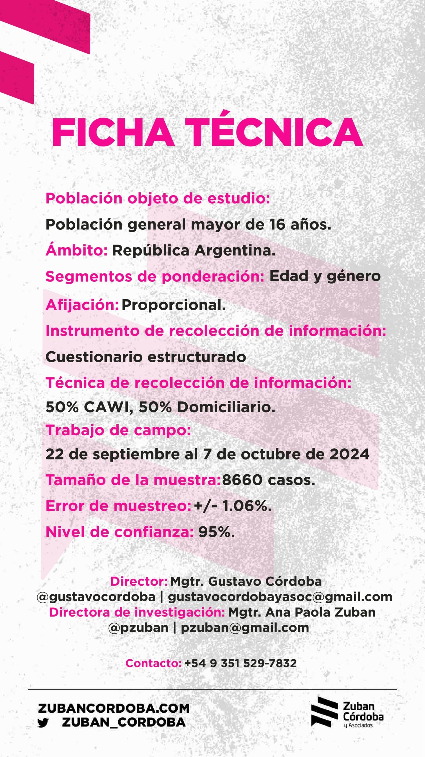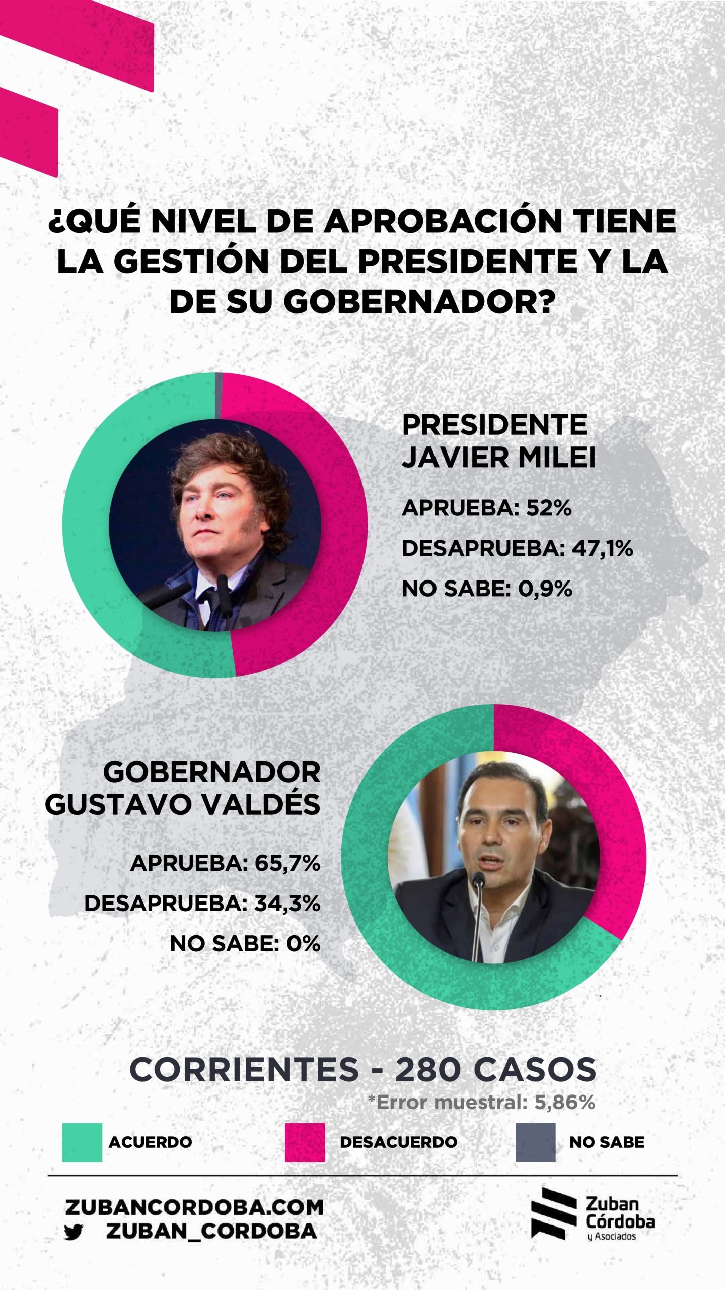 El sondeo se hizo en todas las provincias, en donde se preguntó a los encuestados tanto por la imagen del presidente como la del gobernador local: en ningún caso Milei tiene mejor imagen positiva.