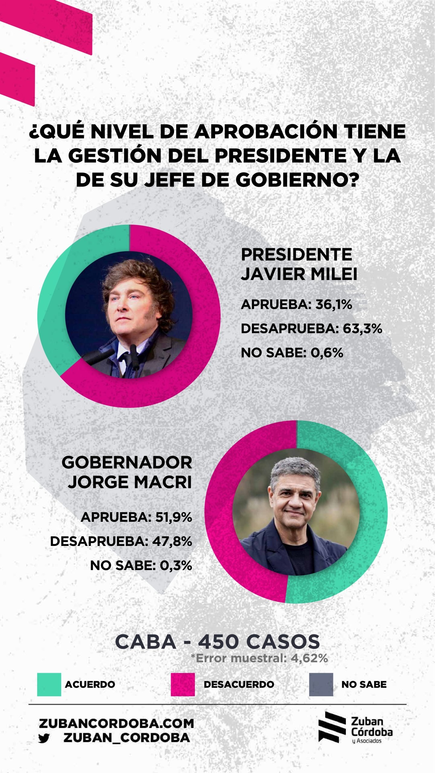 Una encuesta de Zuban Córdoba reveló que Javier Milei ya tiene peor imagen positiva que los 24 gobernadores.