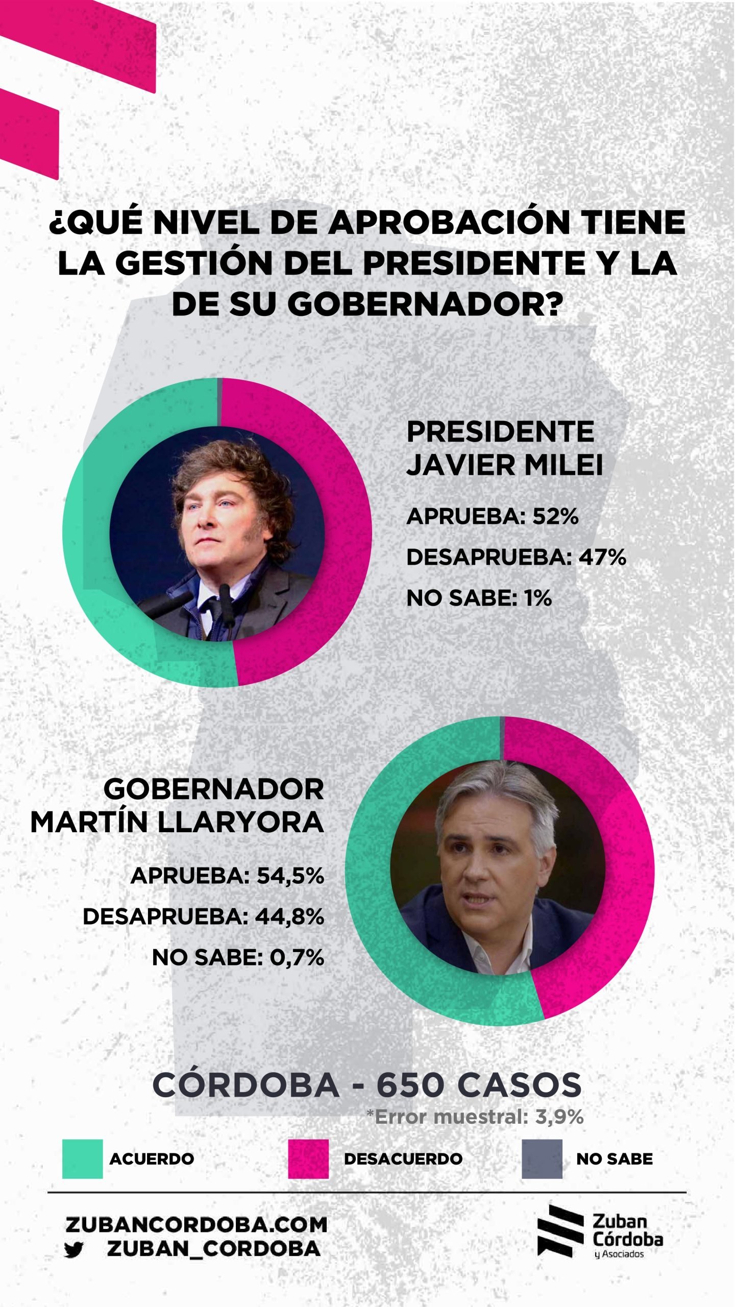 Incluso en Córdoba, donde Milei superó el 70% de los votos el año pasado, su imagen positiva empezó a caer y es del 52%.