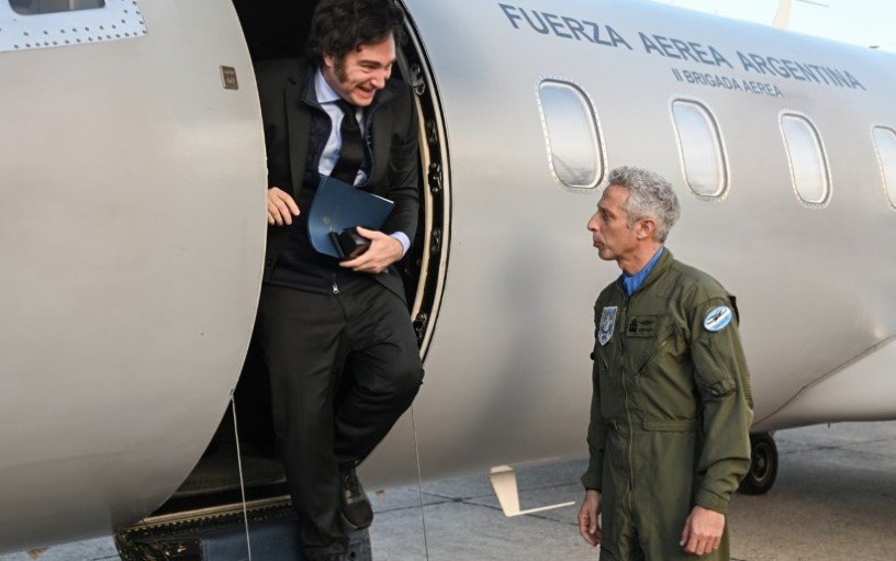 21/10/2024.- La Política Online.- Foto portada: Milei usando los recursos del Estado en un avión de la FF.AA. Mendoza.