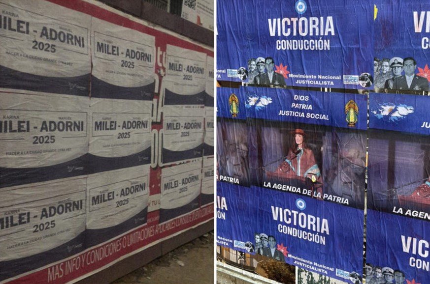 Los carteles de Villarruel resaltaban su figura con el lema “Victoria Conducción” y una fuerte carga simbólica peronista, que incluía imágenes de José de San Martín, Manuel Belgrano, Juan Domingo Perón y José Ignacio Rucci, junto a valores tradicionales como “Dios, Patria y Familia”. Esta asociación con el peronismo ultraconservador no pasó desapercibida, sobre todo porque Villarruel fue señalada como parte de una ala más conservadora dentro de La Libertad Avanza.