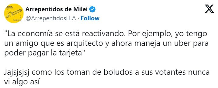 Lemoine puso este insólito ejemplo al admitir que si bien «le falta» repuntar económicamente «a muchos sectores» hay «algunos» que que sí comenzaron a «reactivarse». «Empecé a recibir comentarios de gente, no es para festejar porque hay gente a la que todavía le va mal, pero me están diciendo ‘Che sabe que me esta yendo muy bien, empecé a vender de nuevo», planteó la diputada antes de dar el ejemplo del arquitecto que maneja Uber.