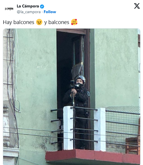 La Cámpora denunció que efectivos de la Policía Federal ocupan balcones aledaños al departamento en el que Cristina Fernández de Kirchner cumple su condena a prisión domiciliaria. La organización lo hizo a través una publicación en X, en la que se ve a un oficial que graba desde un balcón con una cámara.