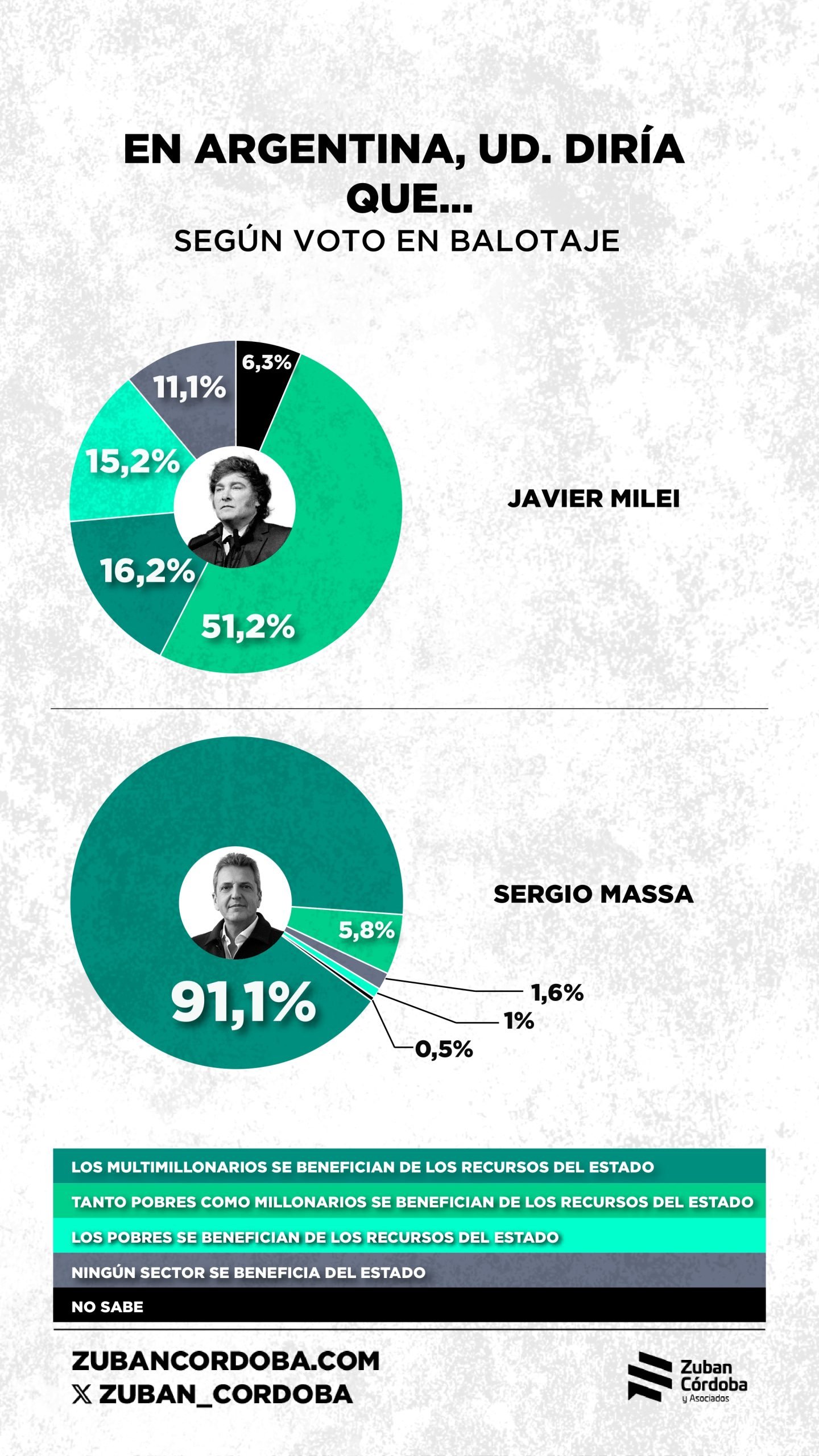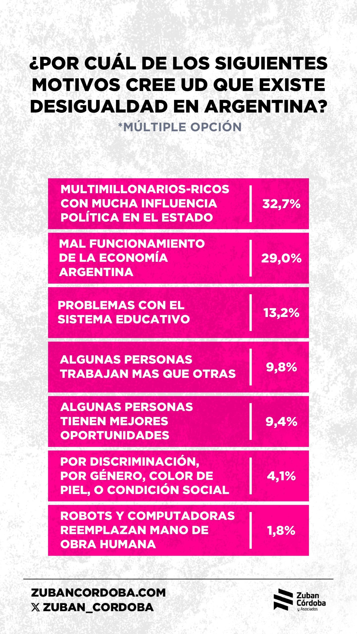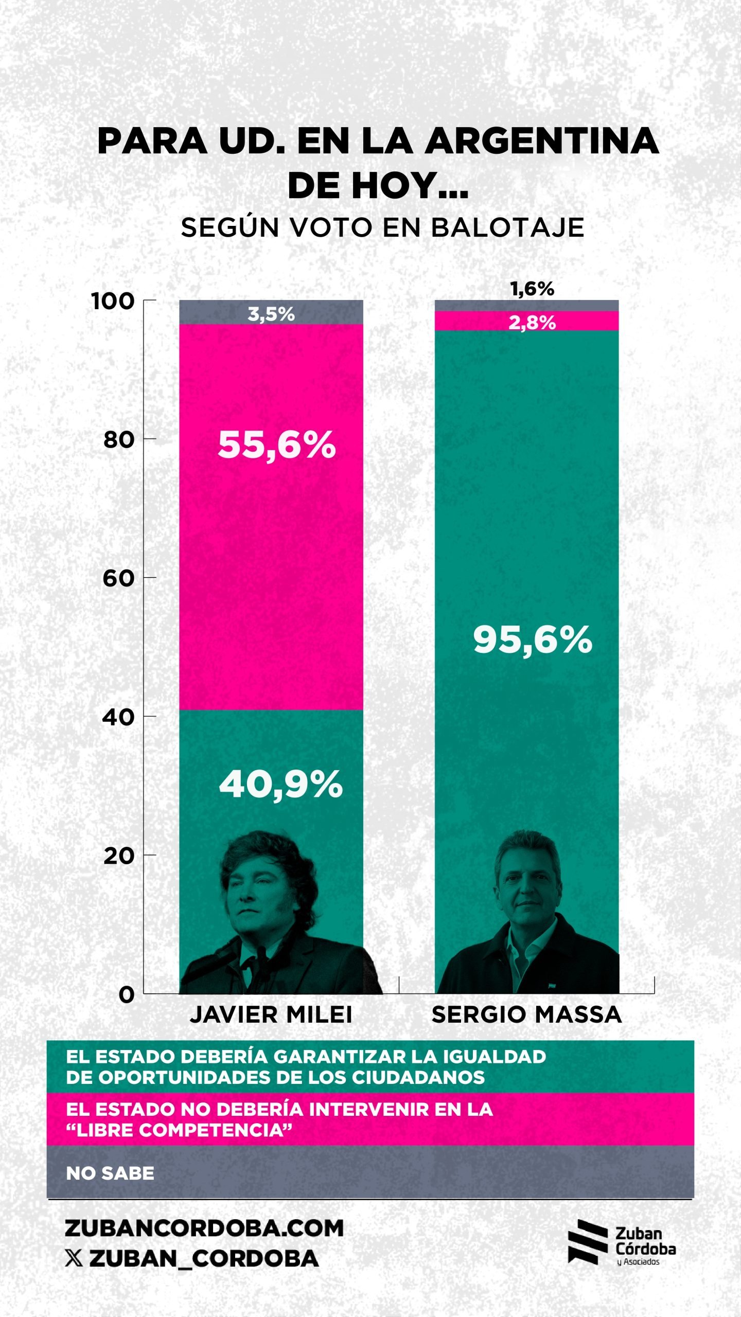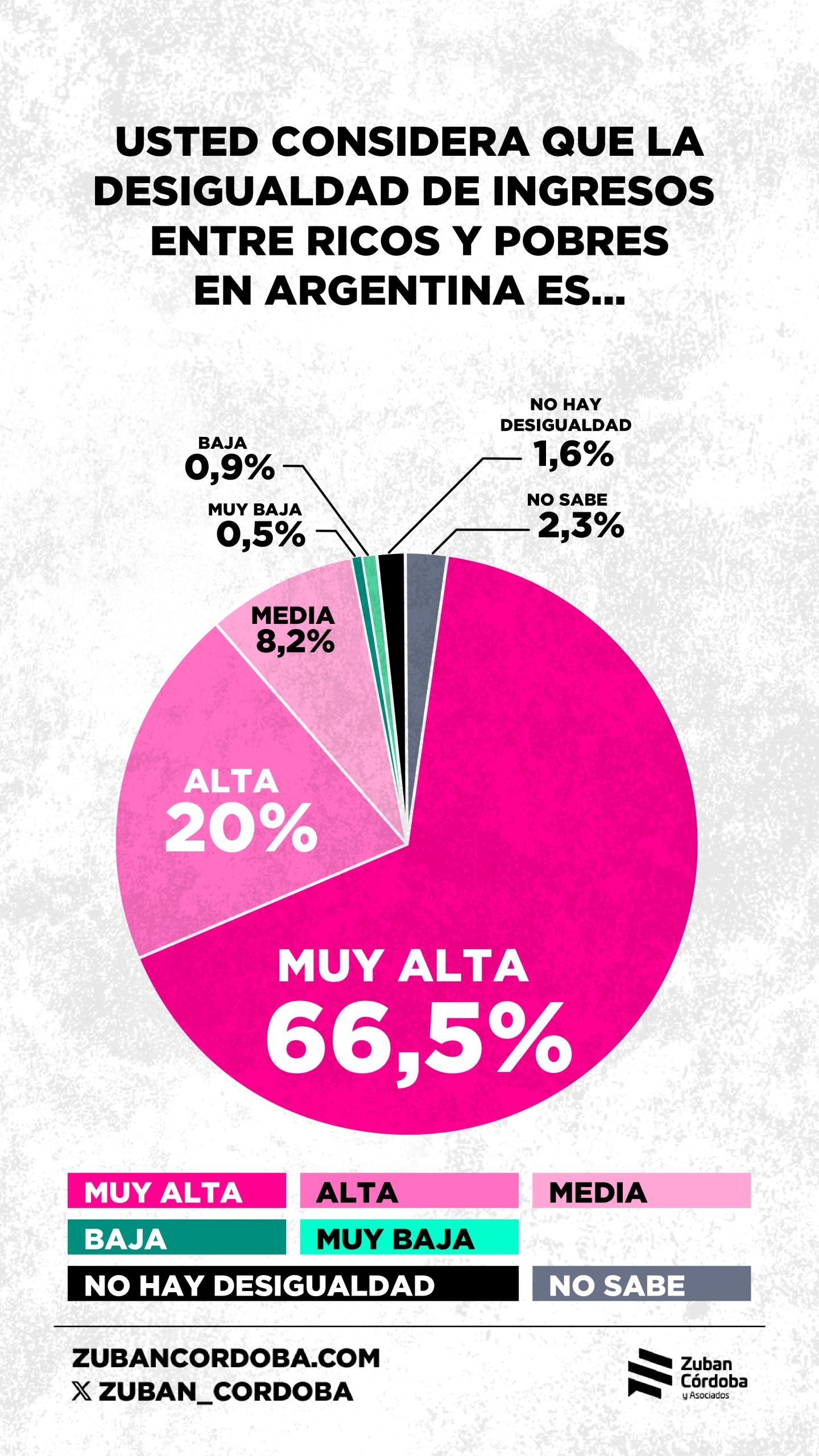 Otro dato que destaca la encuesta es que el 67,8 por ciento cree que el Estado debe garantizar las posibilidades entre todos los ciudadanos, a contramano del ideario libertario que repudia la idea de justicia social.