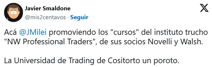 Milei promocionó la escuela de Novelli, que llamó una solución para “el déficit en educación financiera en los países latinoamericanos”.