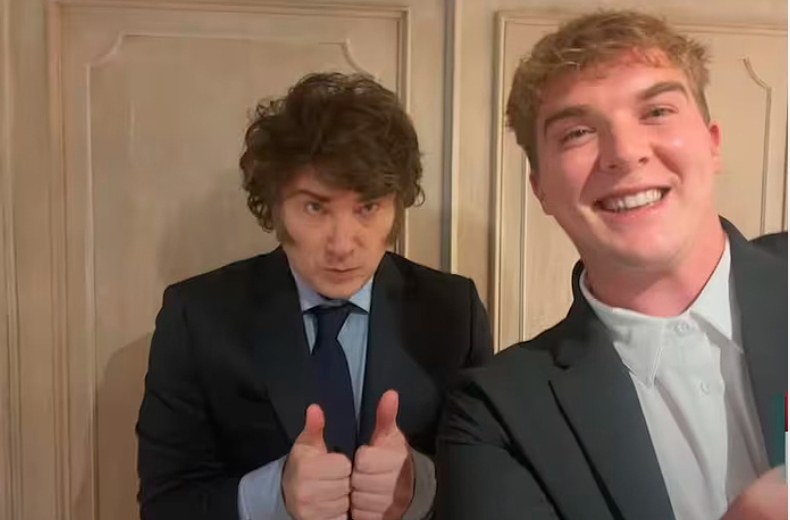 20/05/2025.- Página/12.- Foto portada: Javier Milei junto a Hayden Davis. . Imagen: Archivo.