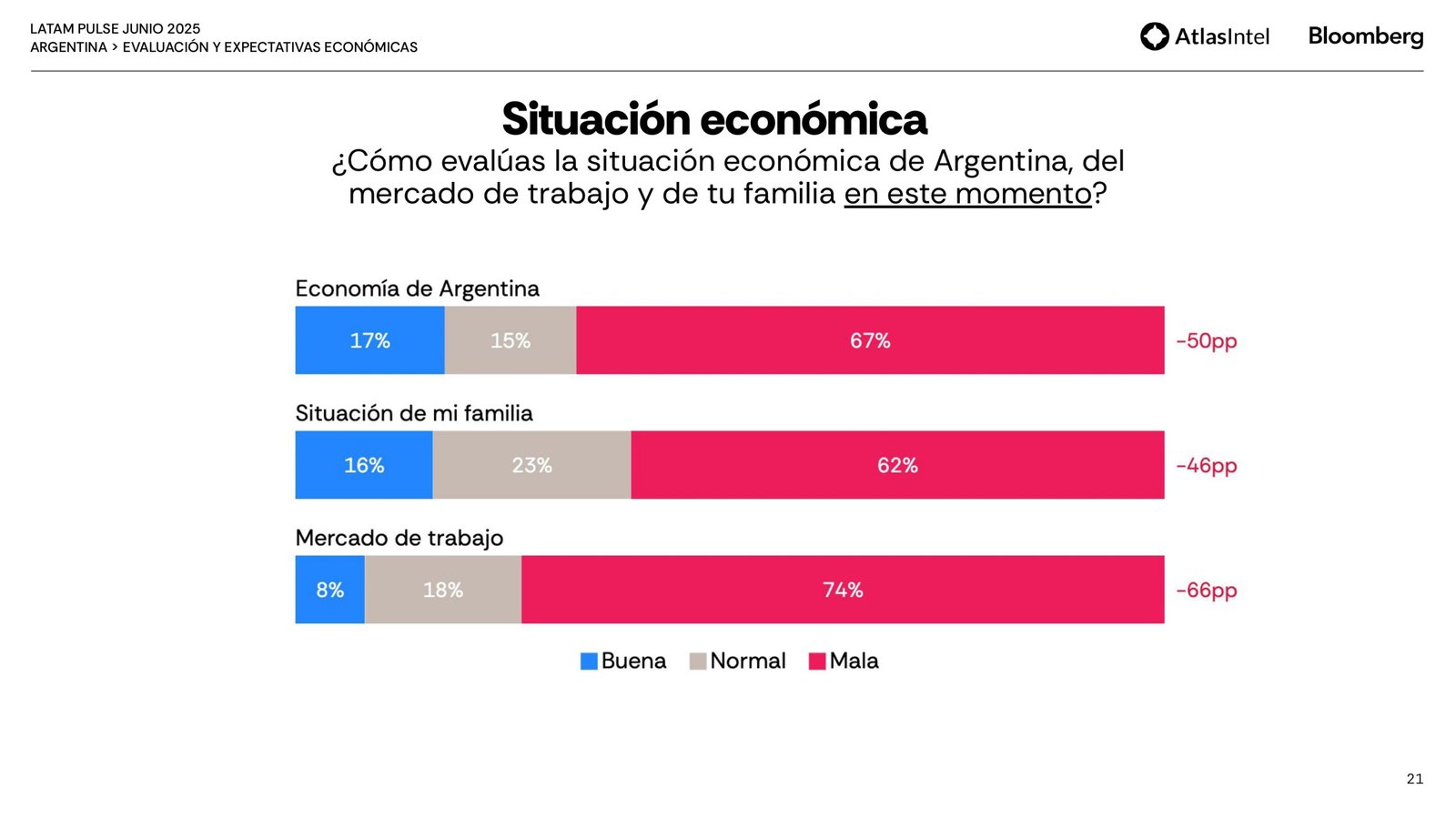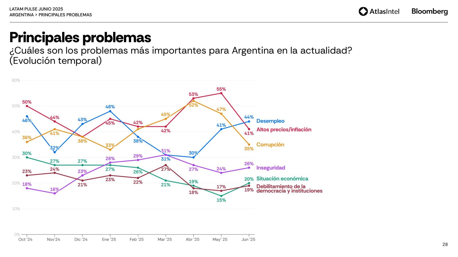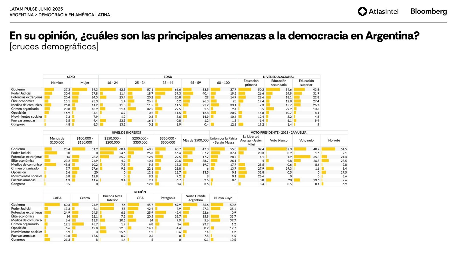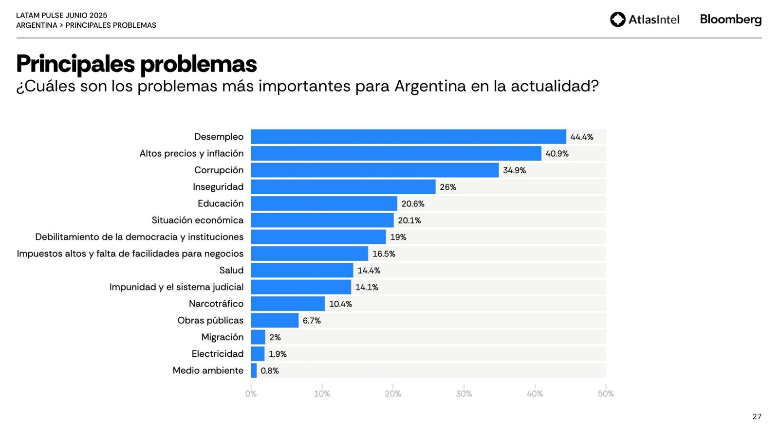 La encuestadora brasileña Atlas Intel publicó su último trabajo en colaboración con la agencia Bloomberg que confirma un retorno del desempleo como principal preocupación de los argentinos.
