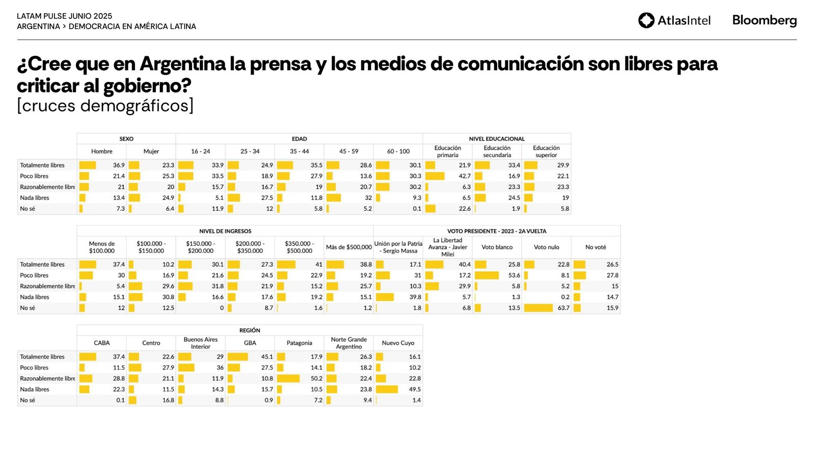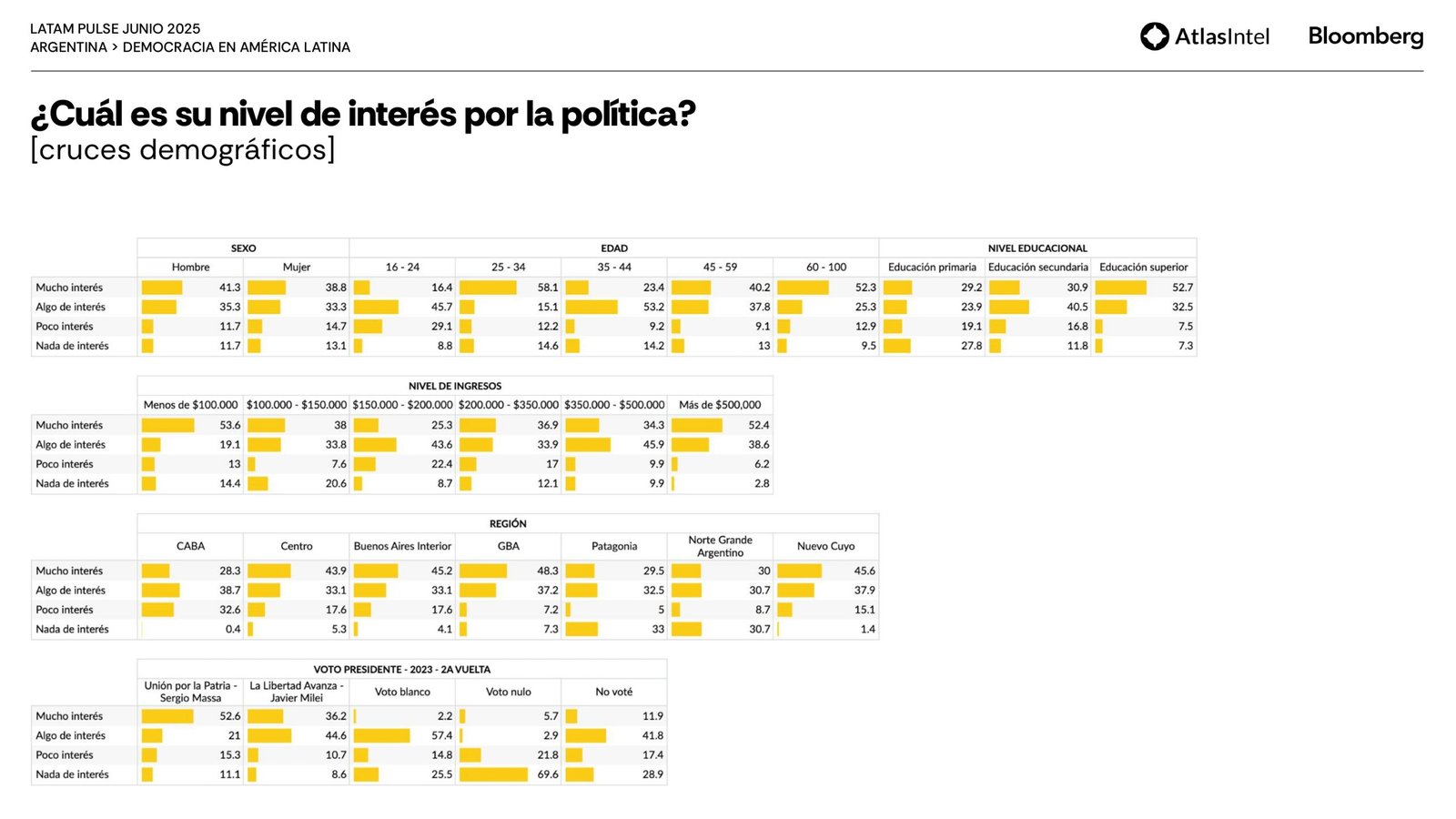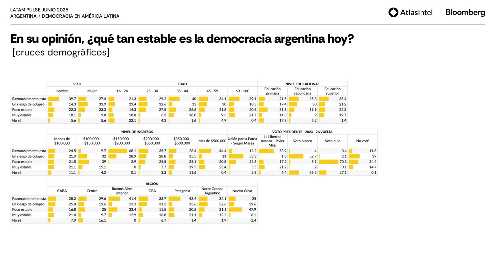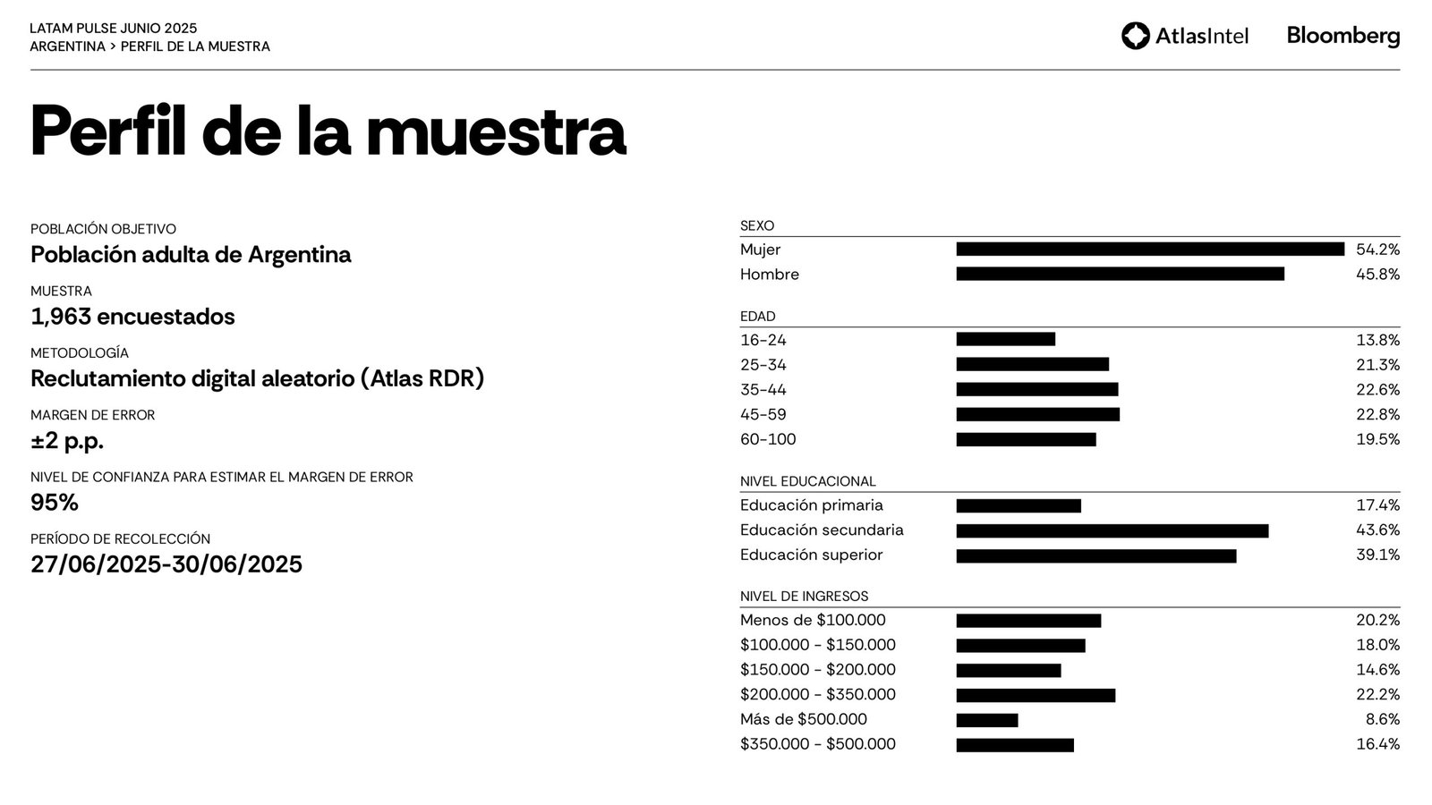 La encuestadora brasileña Atlas Intel publicó su último trabajo en colaboración con la agencia Bloomberg que confirma un retorno del desempleo como principal preocupación de los argentinos.