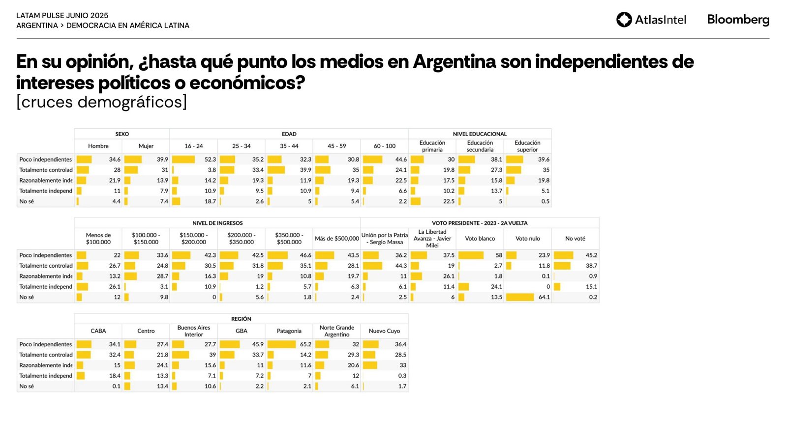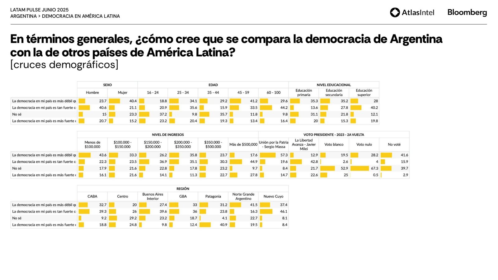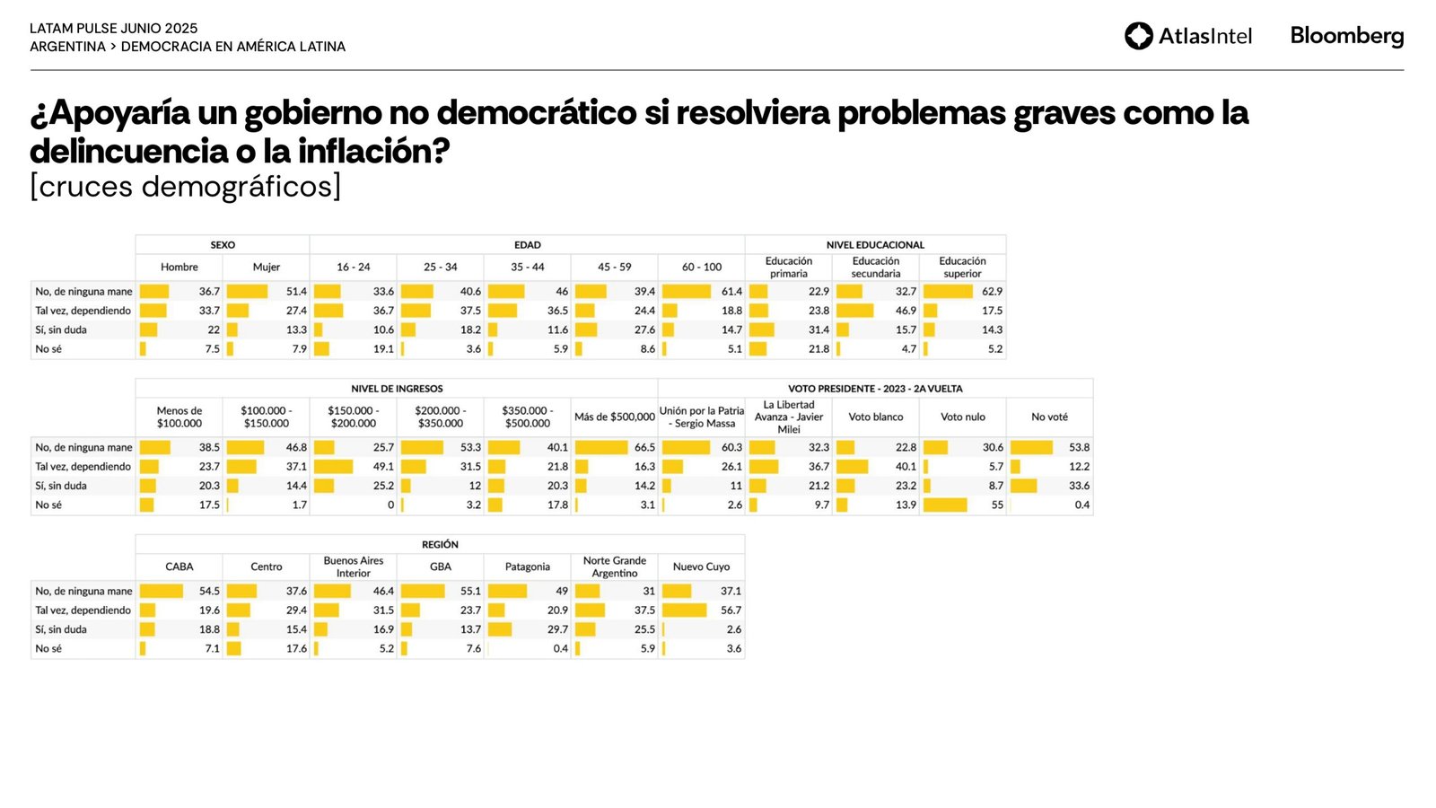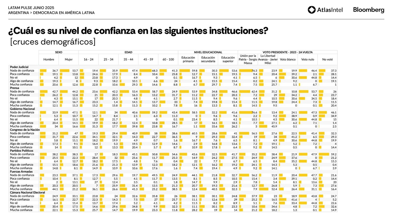 La encuestadora brasileña Atlas Intel publicó su último trabajo en colaboración con la agencia Bloomberg que confirma un retorno del desempleo como principal preocupación de los argentinos.