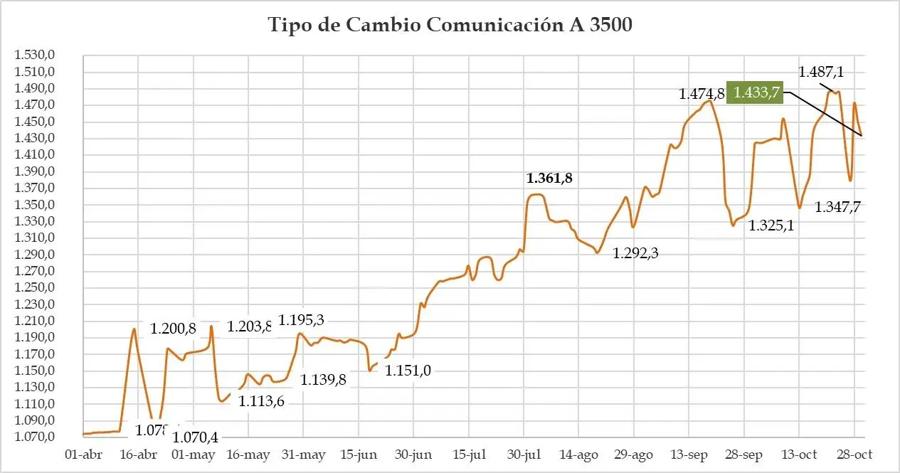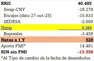 En el mercado, en cambio, observan que el Gobierno sigue sin tener capacidad de comprar divisas genuinas aún después de pasar las elecciones legislativas. El lunes, el saldo de la cuenta del Tesoro arrojaba 77 millones de dólares y un día después 84 millones, apenas una variación de siete millones que se suponen se correspondió a una compra en bloque.