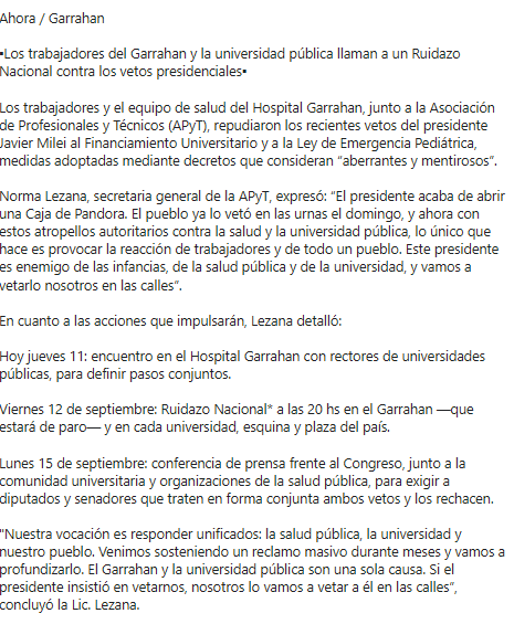 La Asociación de Profesionales y Técnicos (APyT) del Hospital Garrahan, con Autoconvocados, Junta Interna de ATE y todos los sectores del centro de salud de alta complejidad para las infancias, calificó de “aberrantes y mentirosos” los vetos de Milei al Financiamiento Universitario y a la Ley de Emergencia Pediátrica. Alertaron que “el presidente acaba de abrir una Caja de Pandora”.