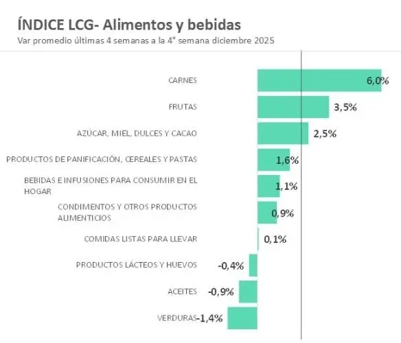 El repunte no es aislado. Ya en la tercera semana de diciembre los alimentos habían subido 0,6%, con la carne nuevamente a la cabeza. La estacionalidad de fin de año y la presión sobre los cortes vacunos siguen impidiendo una baja real de los precios.