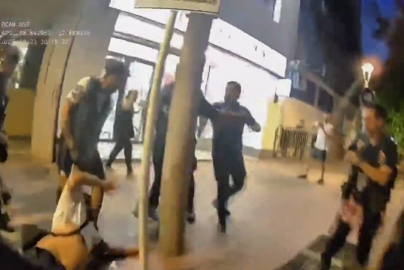 06/12/2025.- Salta al Instante.- Foto portada: La represión será televisada: Cornejo, el “mejor alumno” de Milei, y la policía que golpea mientras apaga las cámaras. Imagen: Captura de video.