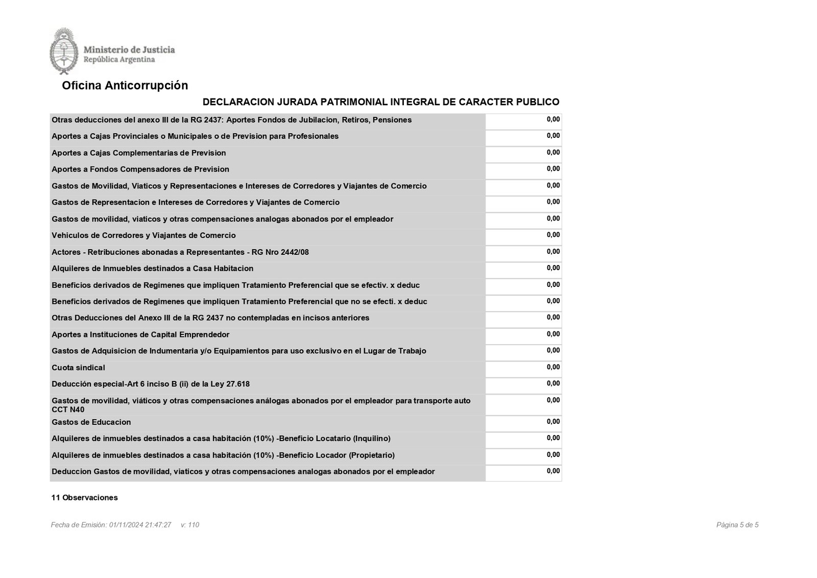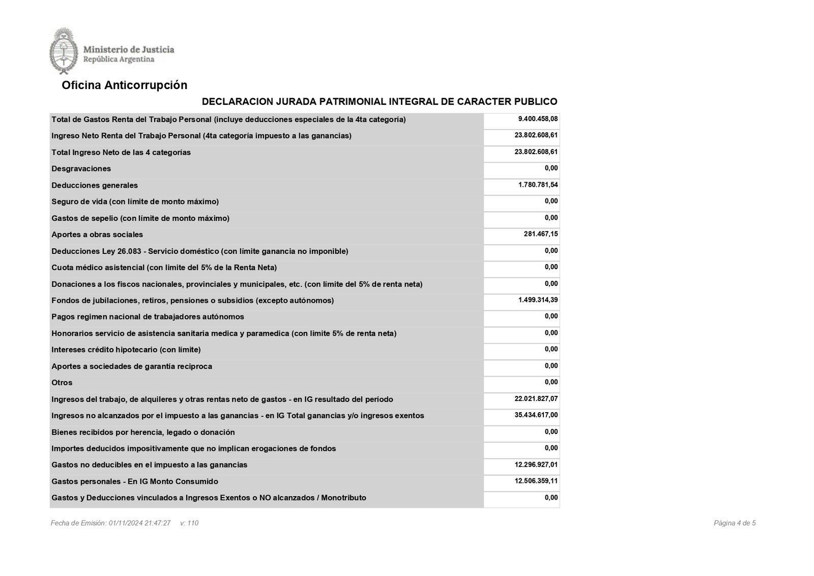 Los datos son oficiales y, tal como se observa, se desprenden de la declaración jurada que presentó el jefe de Estado al borde del límite impuesto por la ley. Milei tenía hasta las 23:59 del viernes para hacer su presentación y a la Oficina Anticorrupción el PDF le llegó a las 21.47, según figura en el sistema.