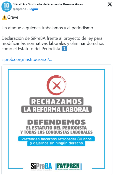 Las organizaciones del sector —SiPreBA y Fatpren— no tardaron en responder: “La contrarreforma laboral quiere borrar un siglo de conquistas”, denunciaron en un comunicado durísimo. Y remarcaron algo que atraviesa todo el gremio: «Detrás de la supuesta modernización, hay una regresión monumental en materia de derechos».