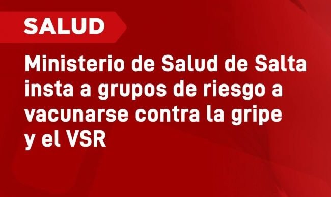 El Ministerio de Salud Pública insta a grupos de riesgo a vacunarse contra la gripe y contra el Virus Sincicial Respiratorio (VSR) en toda la provincia debido al incremento de casos registrados en las últimas semanas. Las autoridades sanitarias instan a la población a vacunarse, especialmente a los grupos de riesgo, para prevenir complicaciones graves.